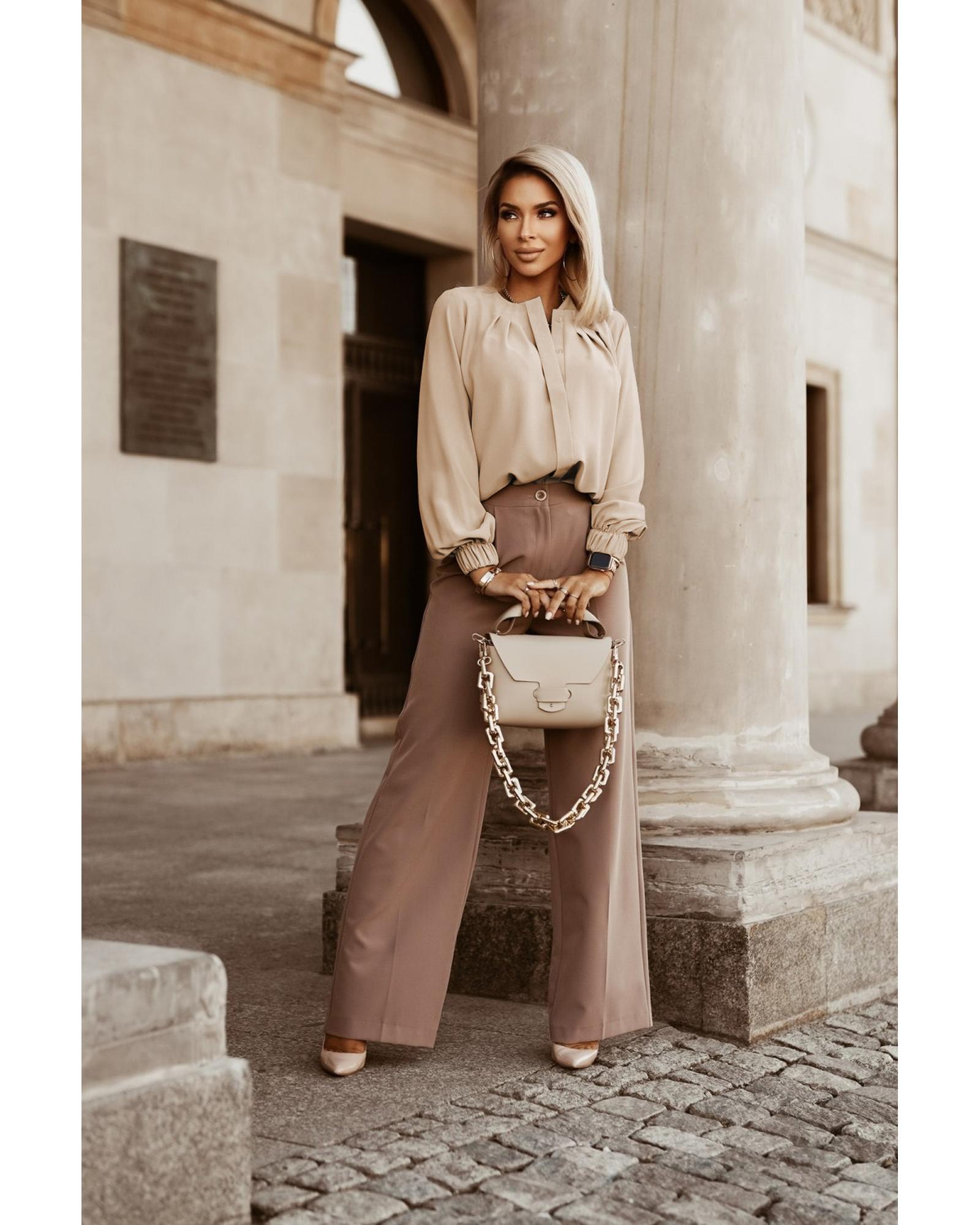 Khaki Crew Neck Gathered Stretch Cuff Shirt – L