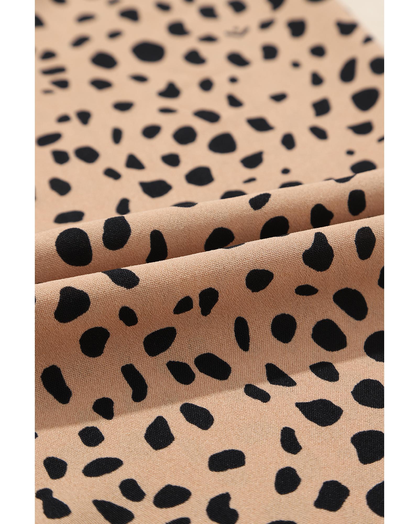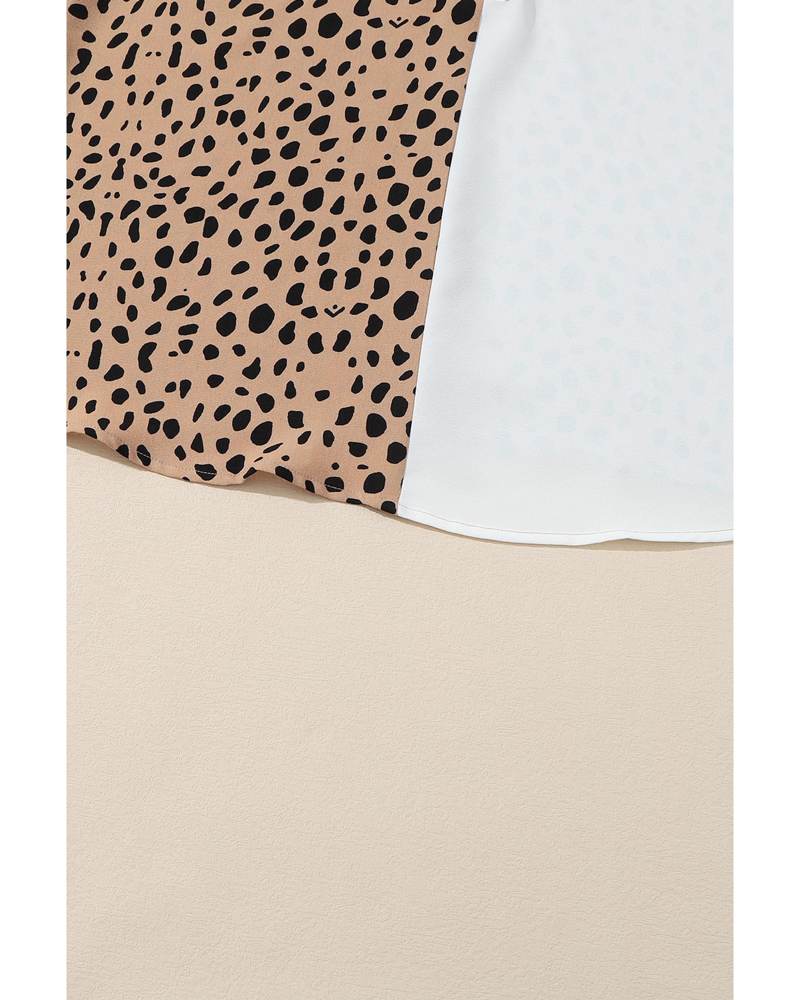 Khaki Leopard Contrast Half Button Casual Blouse – S