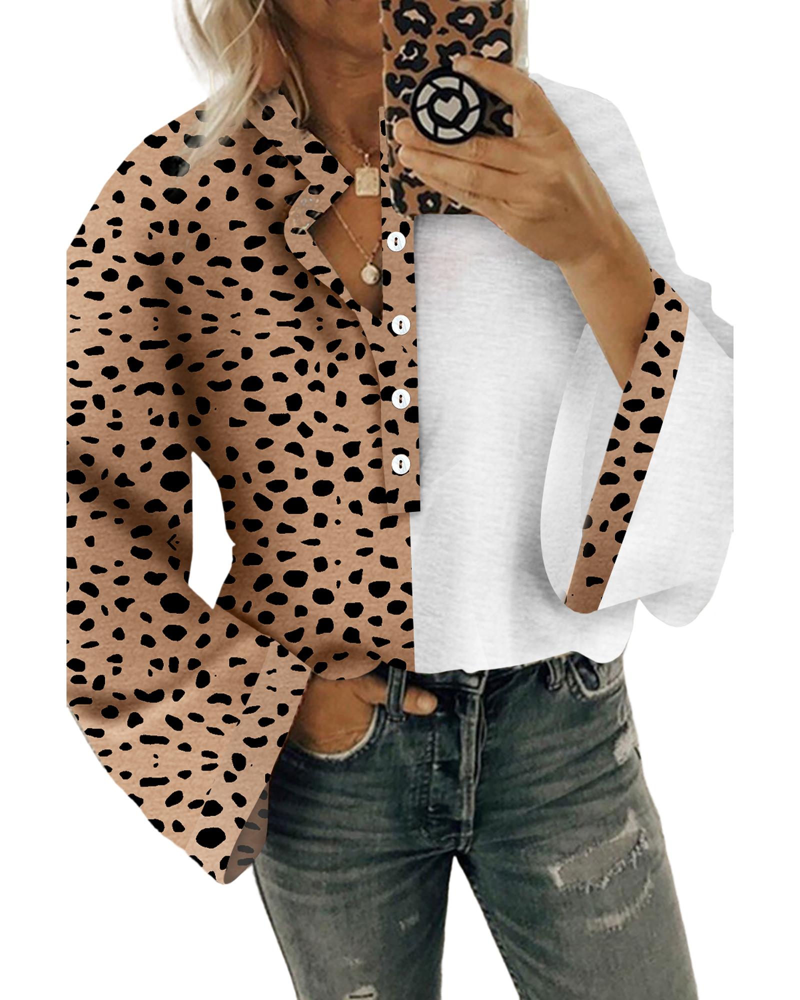 Trendy contrast leopard design Casual loose style with half button and wide sleeves Made of soft and breathable fabric Perfect to pair with fashion jeans and pants Available in multiple sizes - Material: 100% Polyester