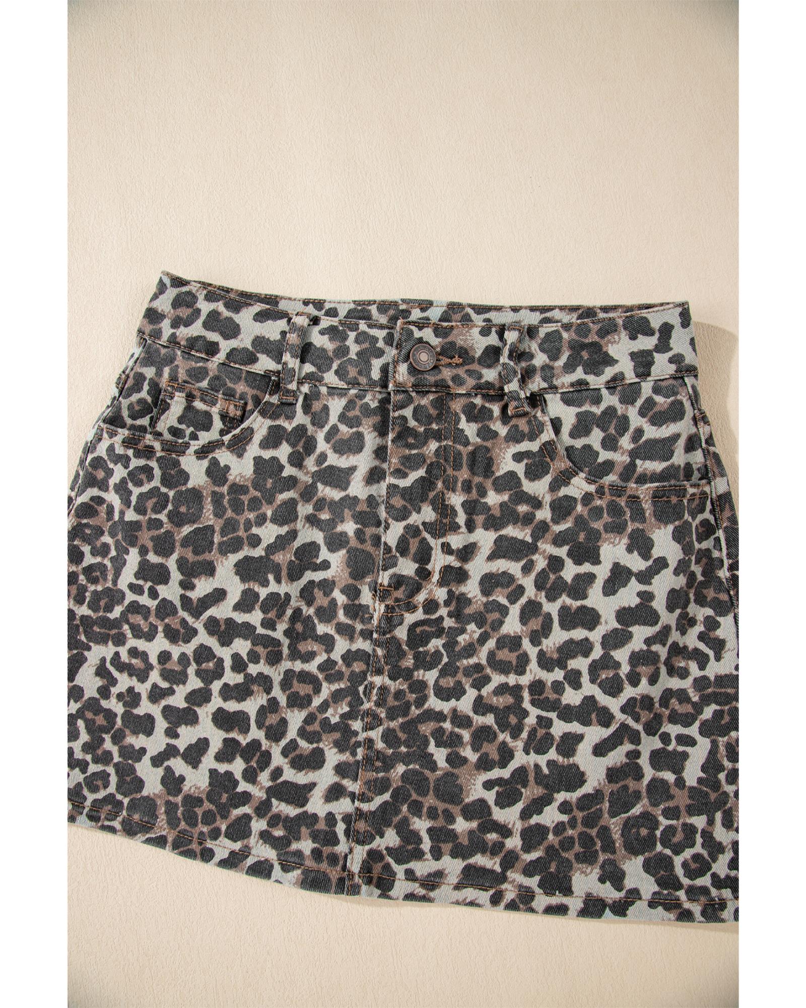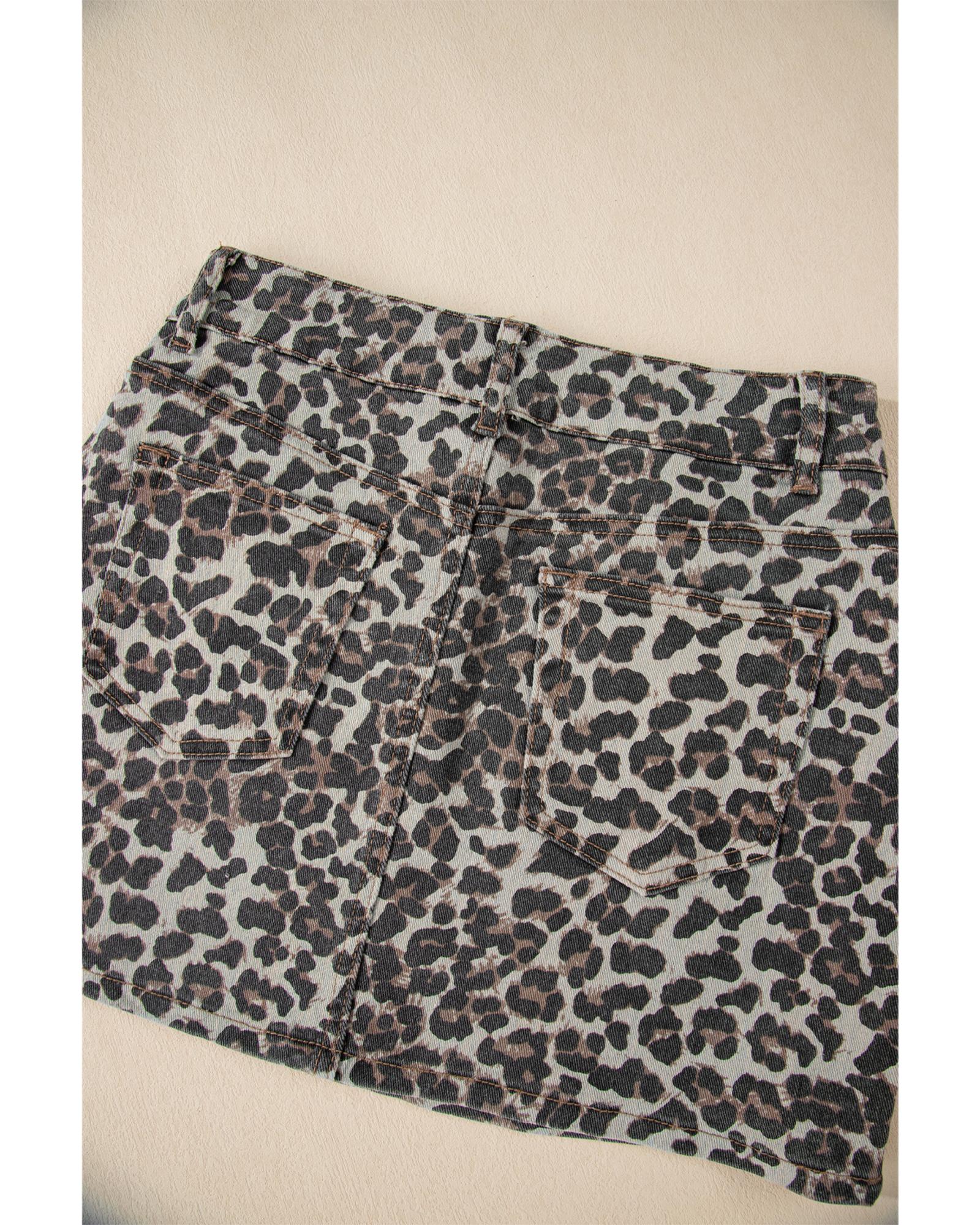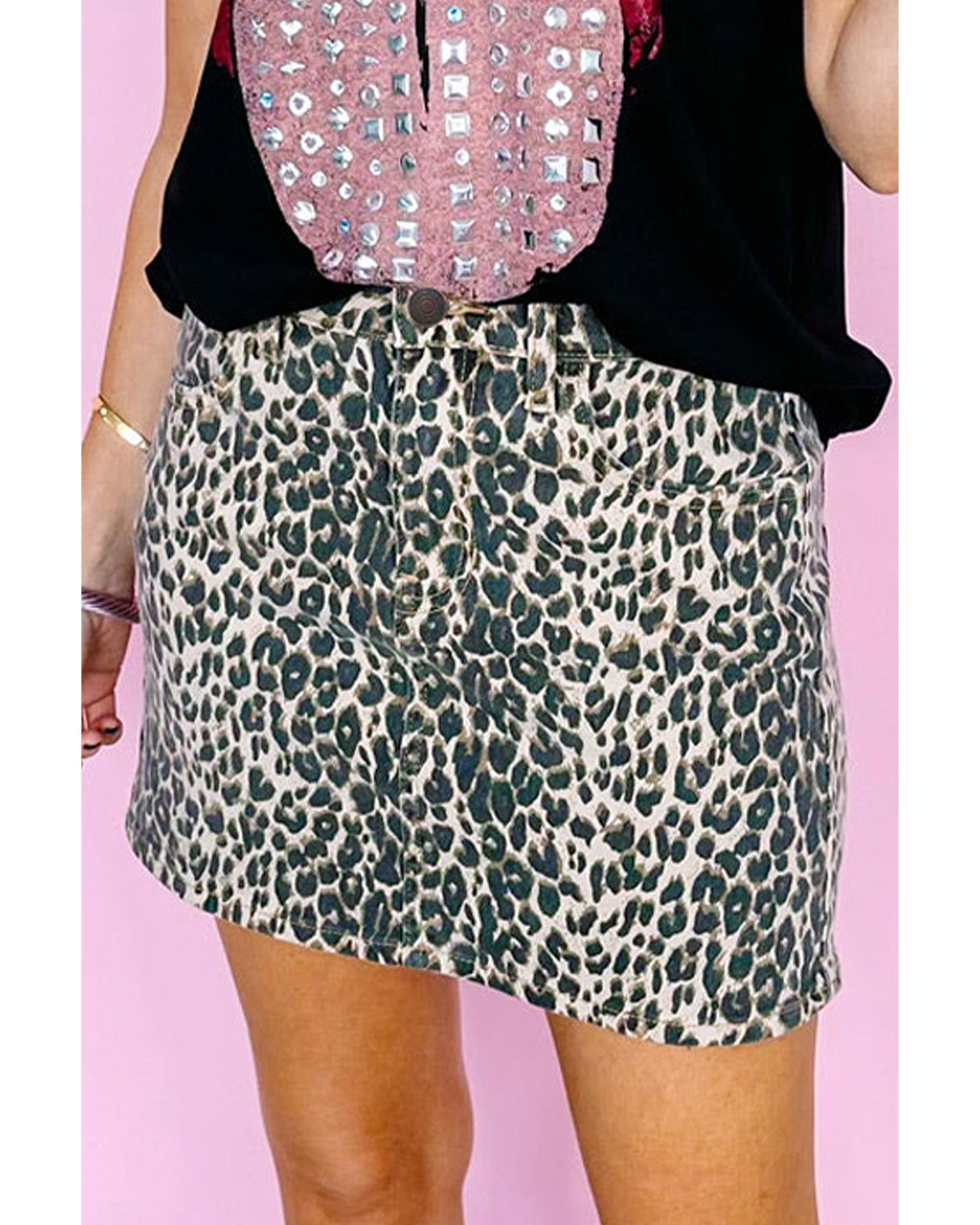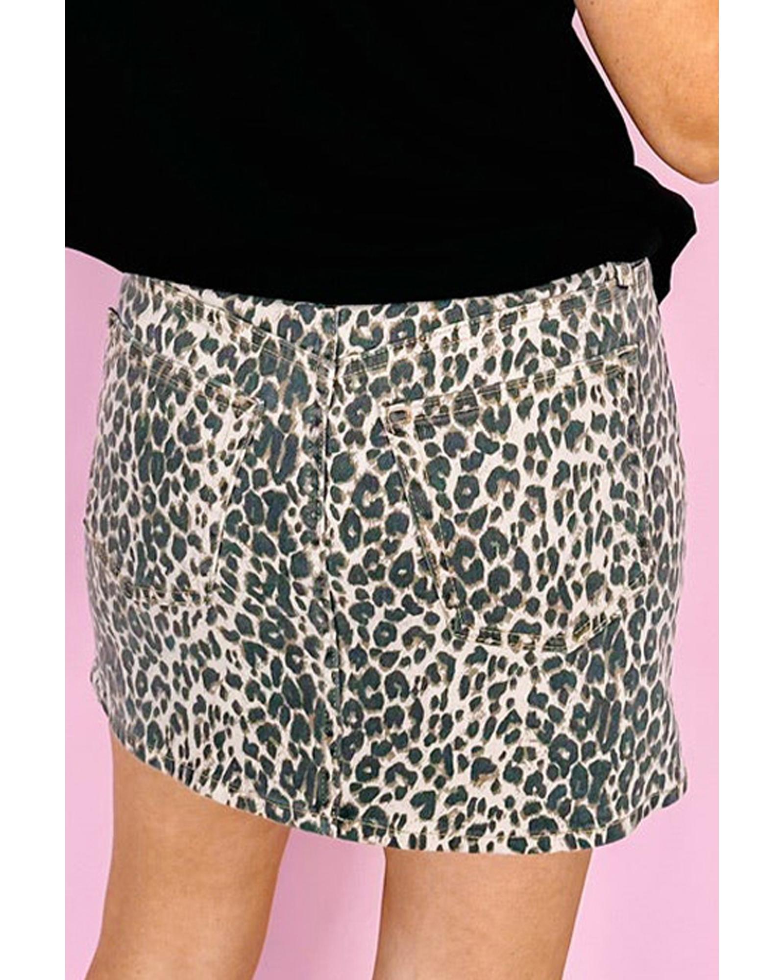 Khaki Leopard Denim Mini Skirt – 14 US