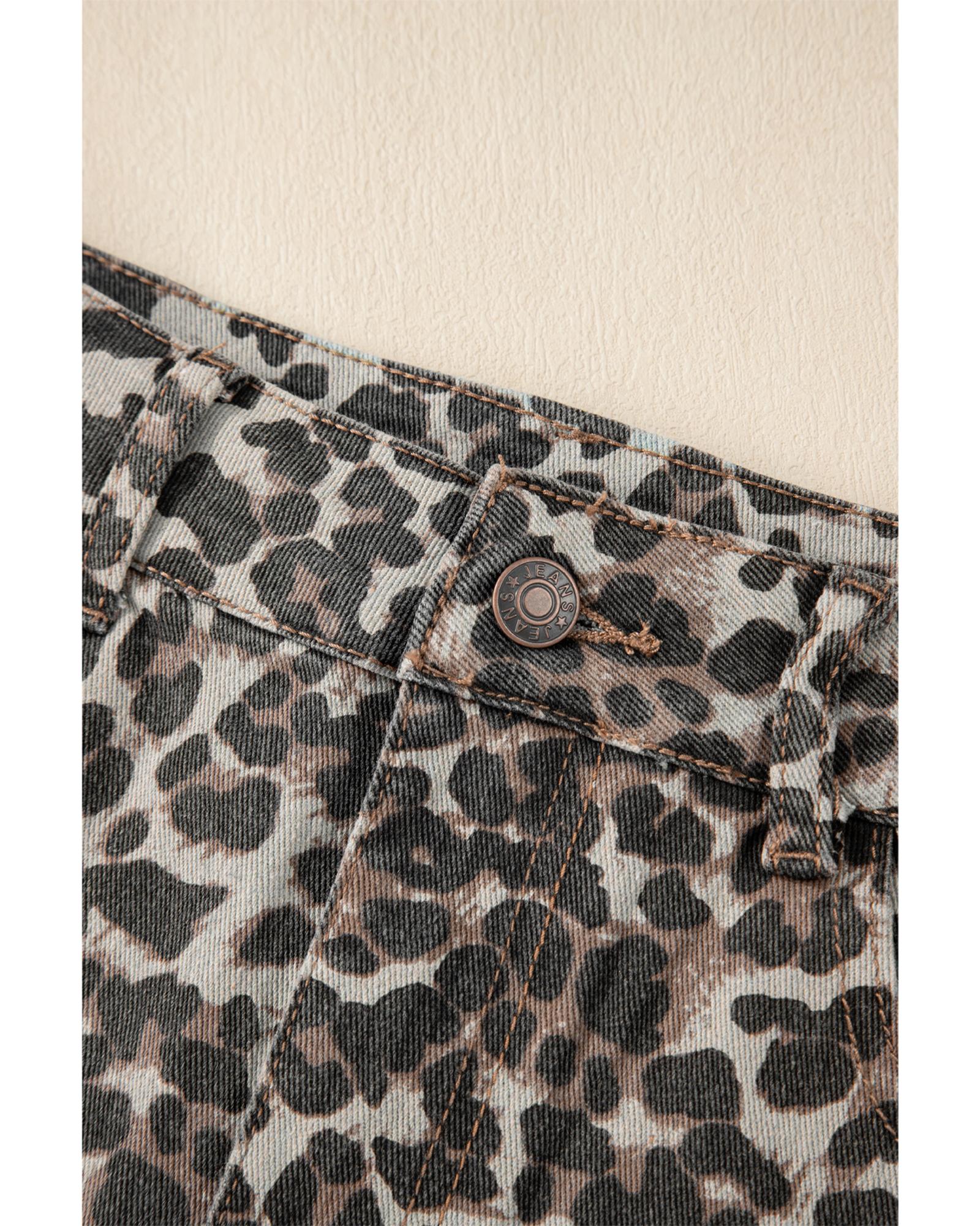 White Leopard Frayed Hem Denim Shorts - 8 US