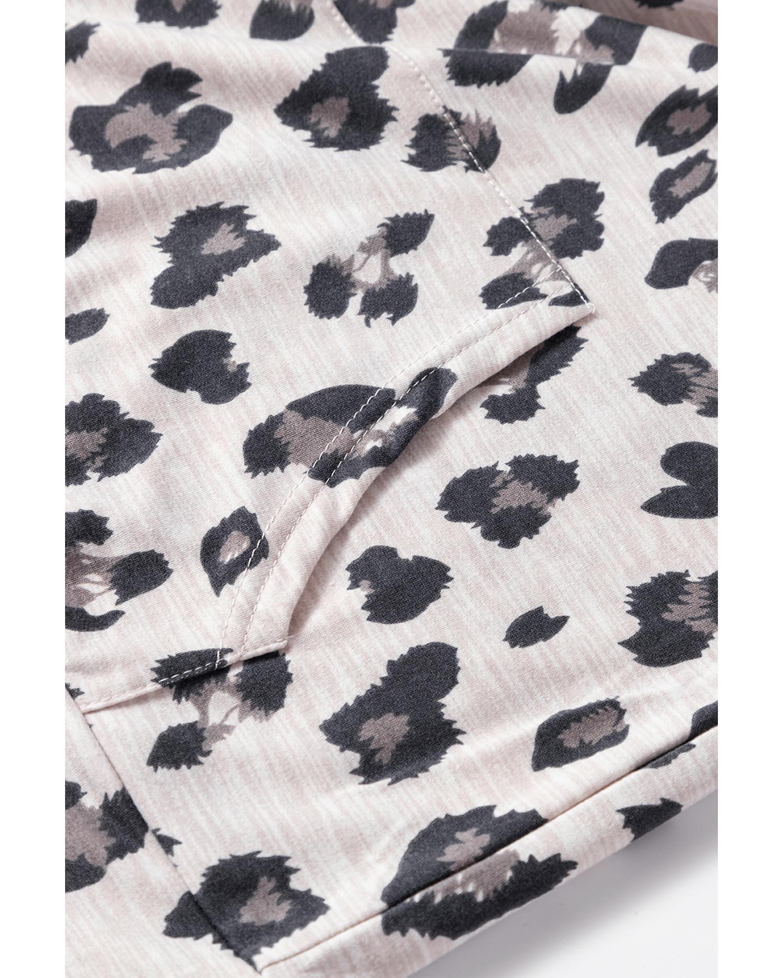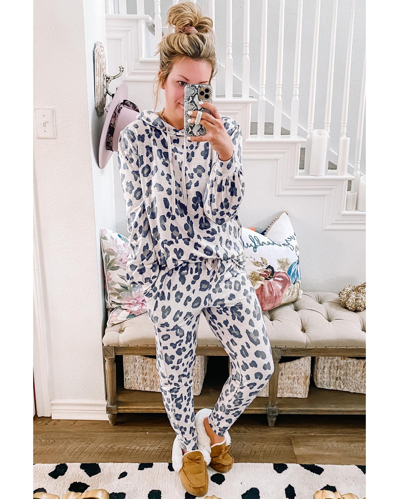 - Khaki leopard print drawstring hoodie and skinny pants lounge set