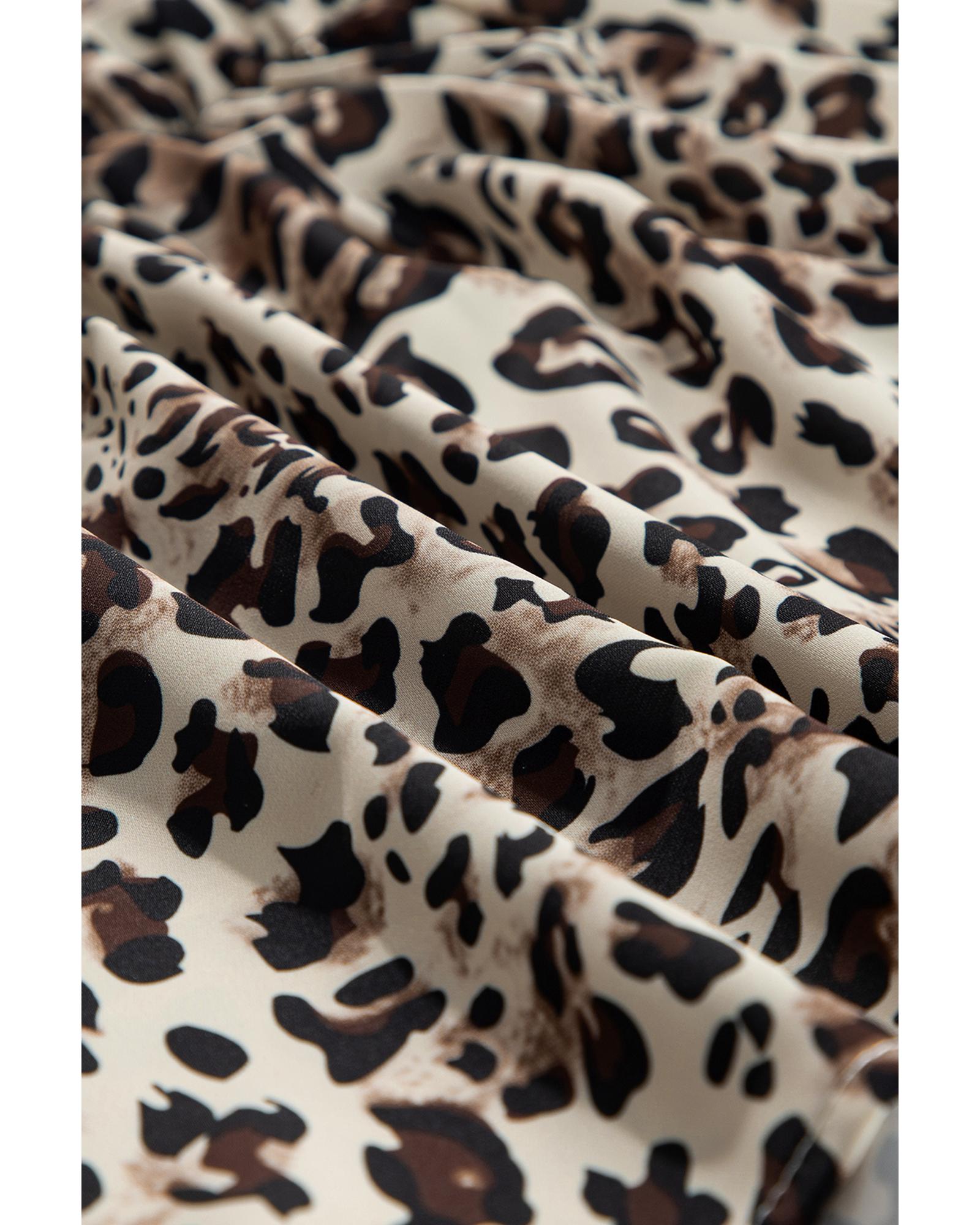 Khaki Leopard Print Lace-up Ruffled 3/4 Sleeve Plus Size Blouse – 3X