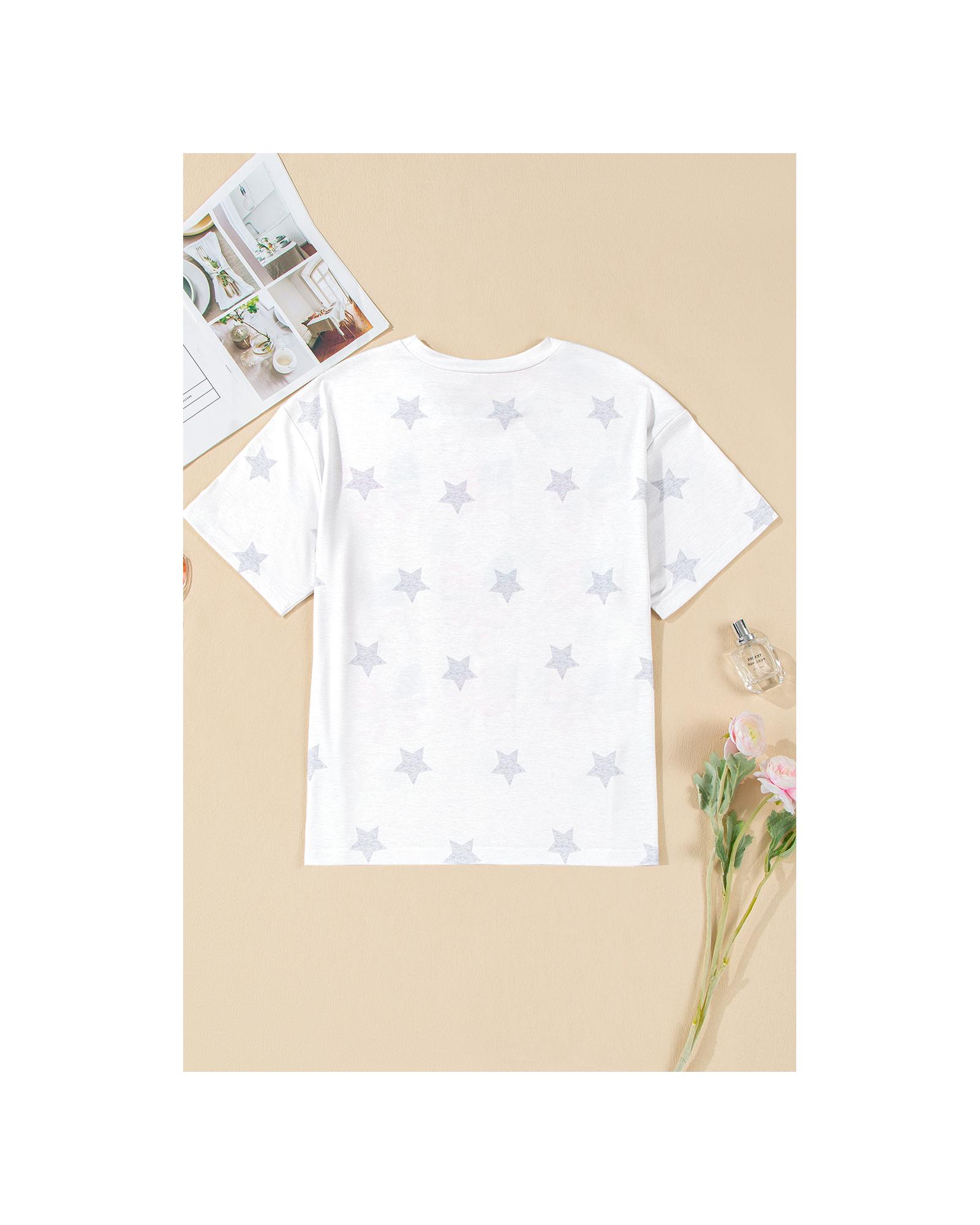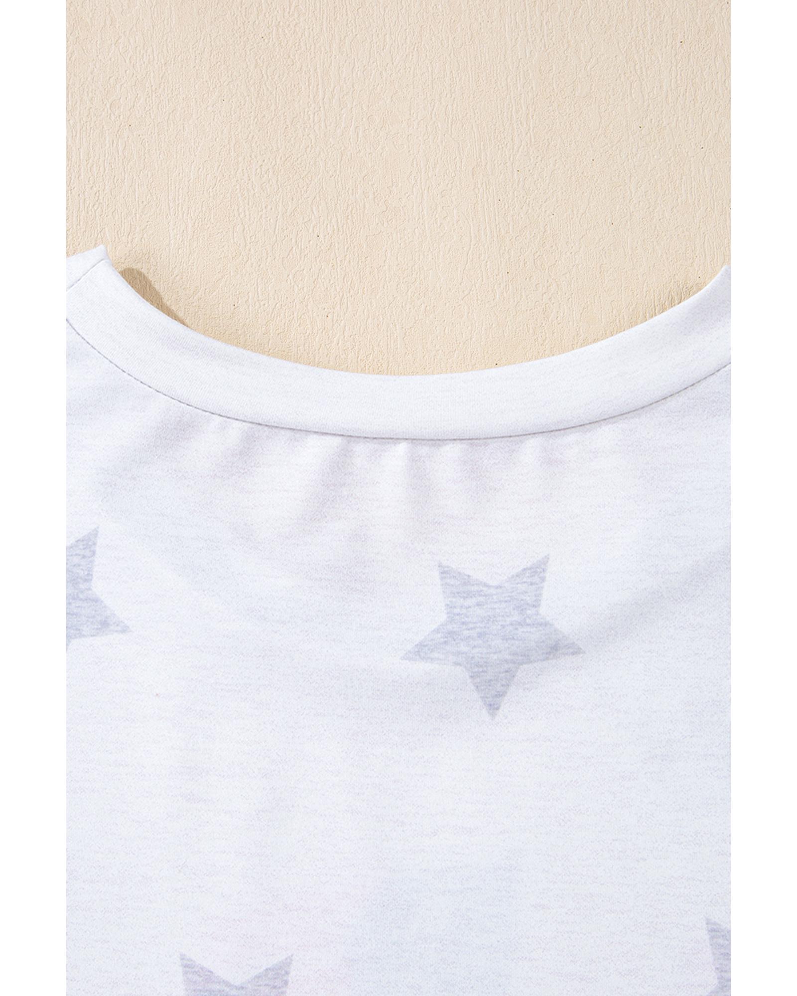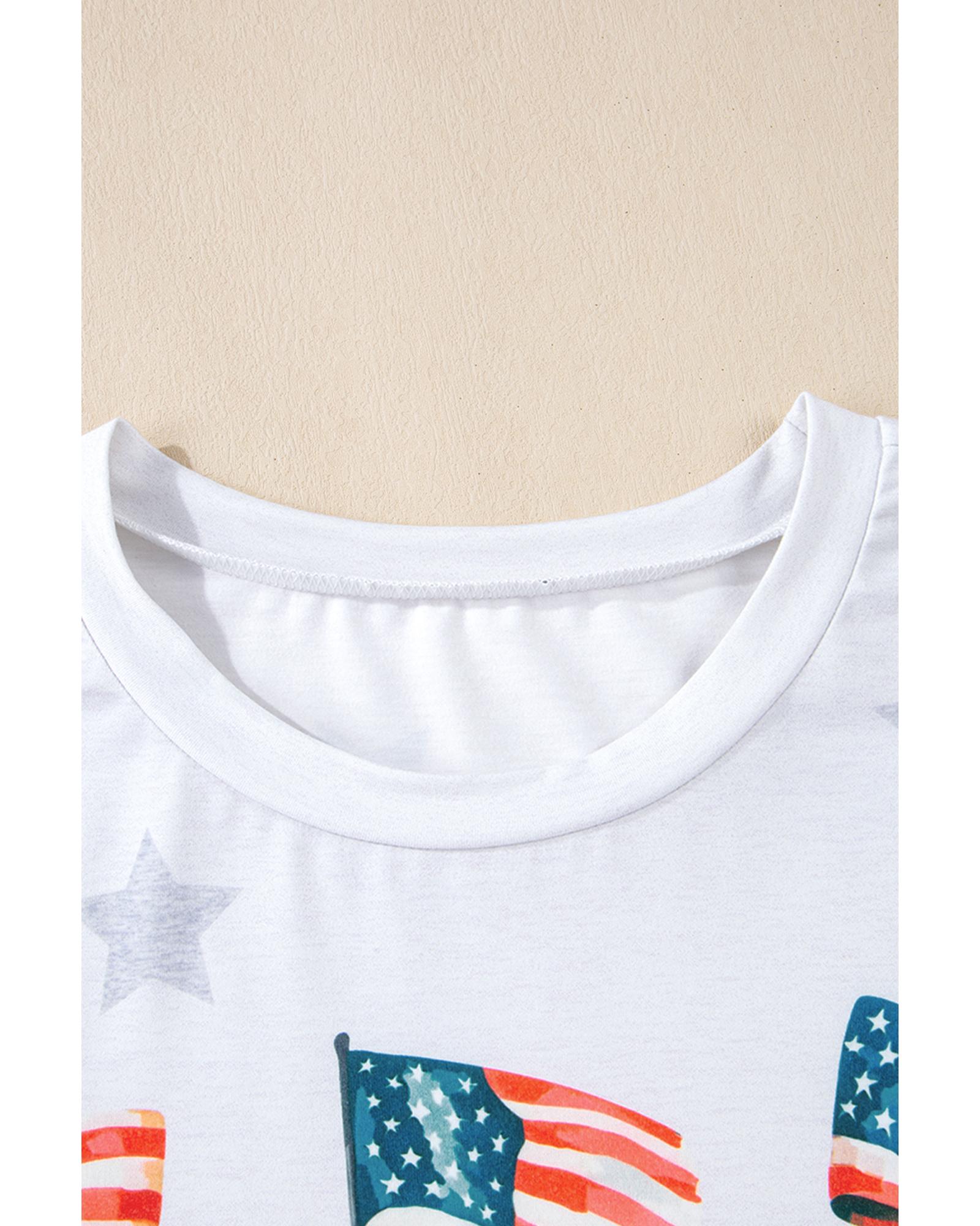 - Khaki Patriotic Flag Bow Graphic Starry Round Neck T