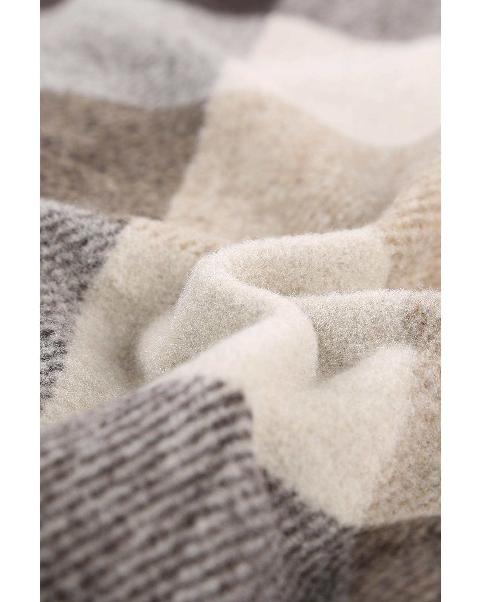 Khaki Plaid Color Block Buttoned Long Sleeve Jacket with Pocket – 2XL