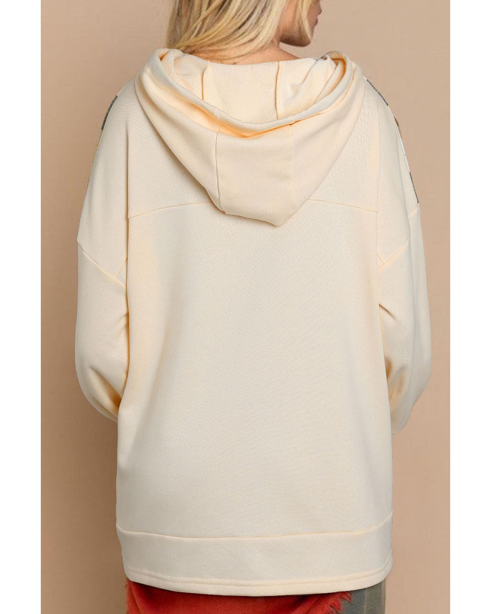 Khaki Plaid Patchwork Kangaroo Pocket Oversized Hoodie – XL