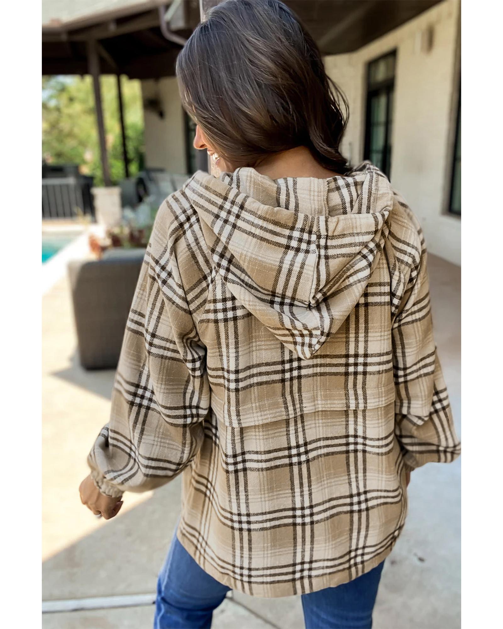 - Classic Khaki Printed Zipped Front Pullover Plaid Hoodie