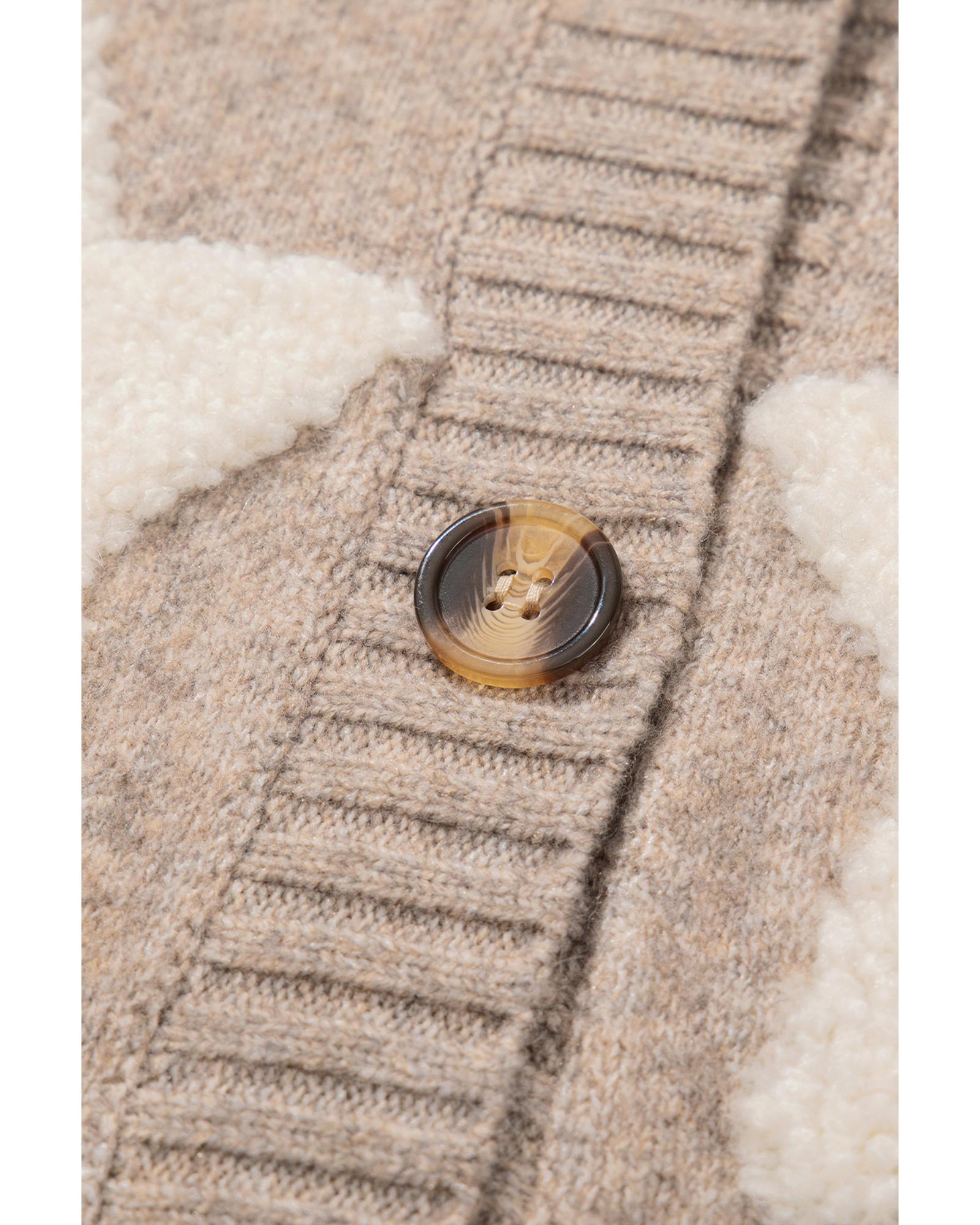 Khaki Sherpa Star Pattern Textured Sweater Cardigan with Pockets – M