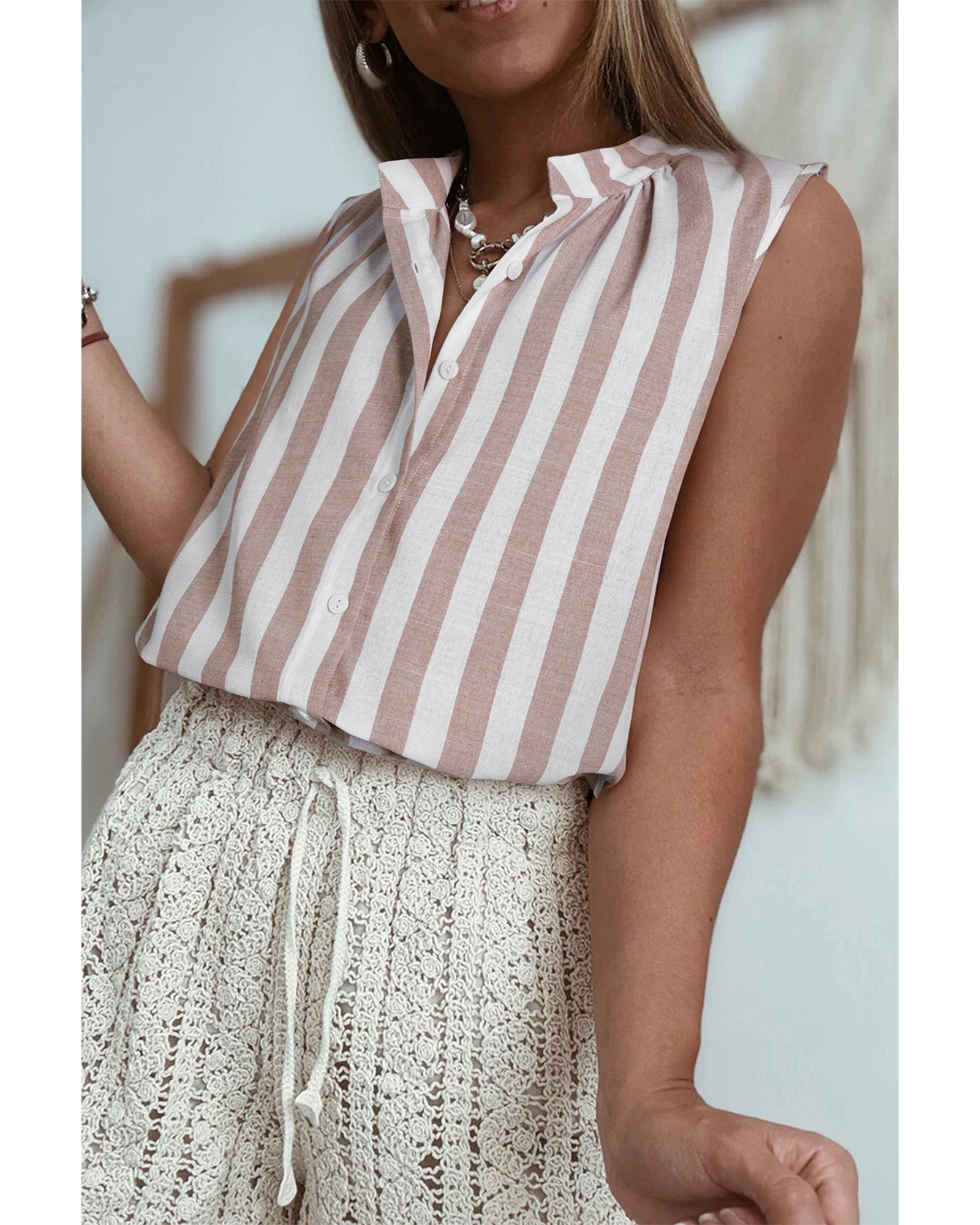 - Versatile striped sleeveless shirt for summer wardrobe