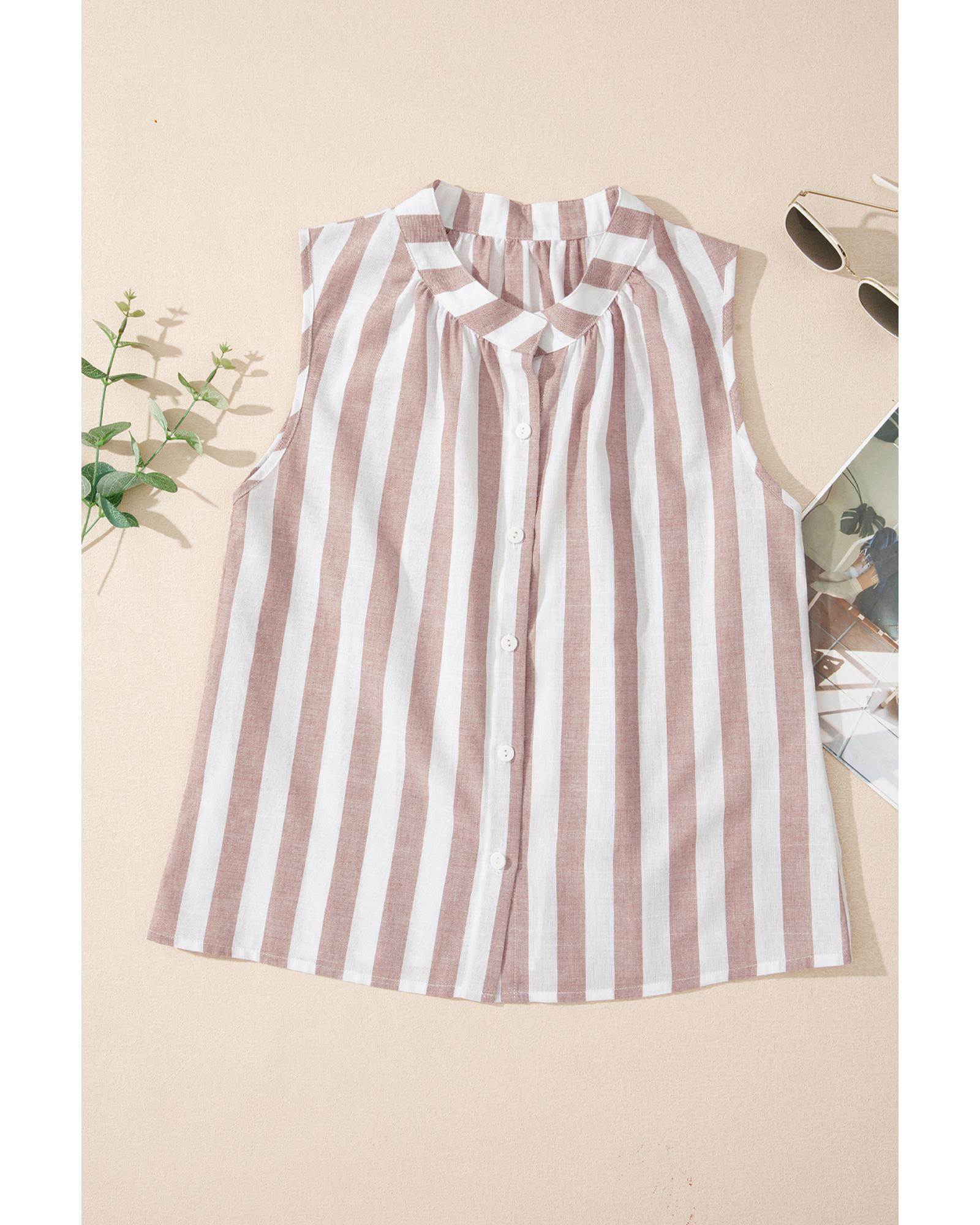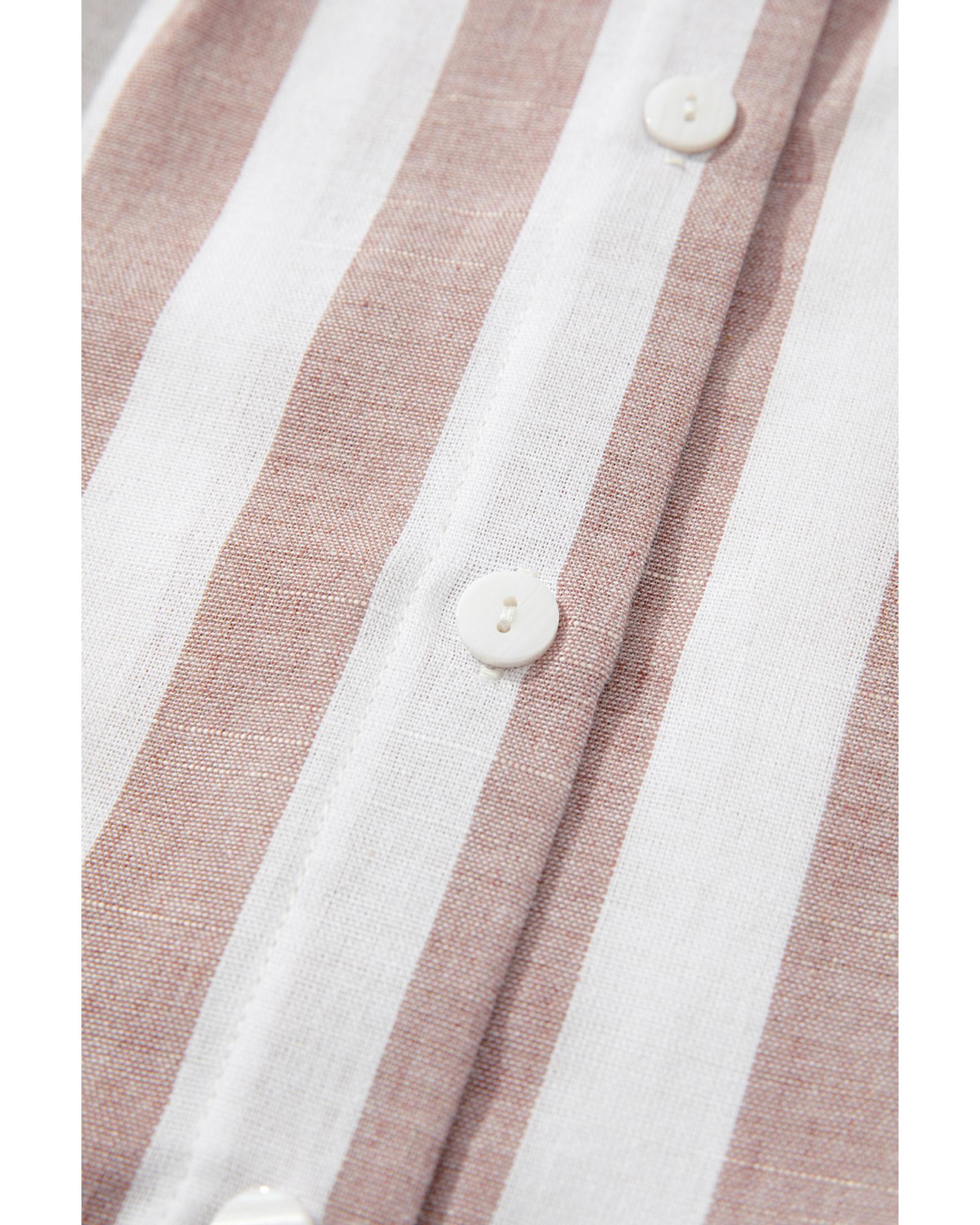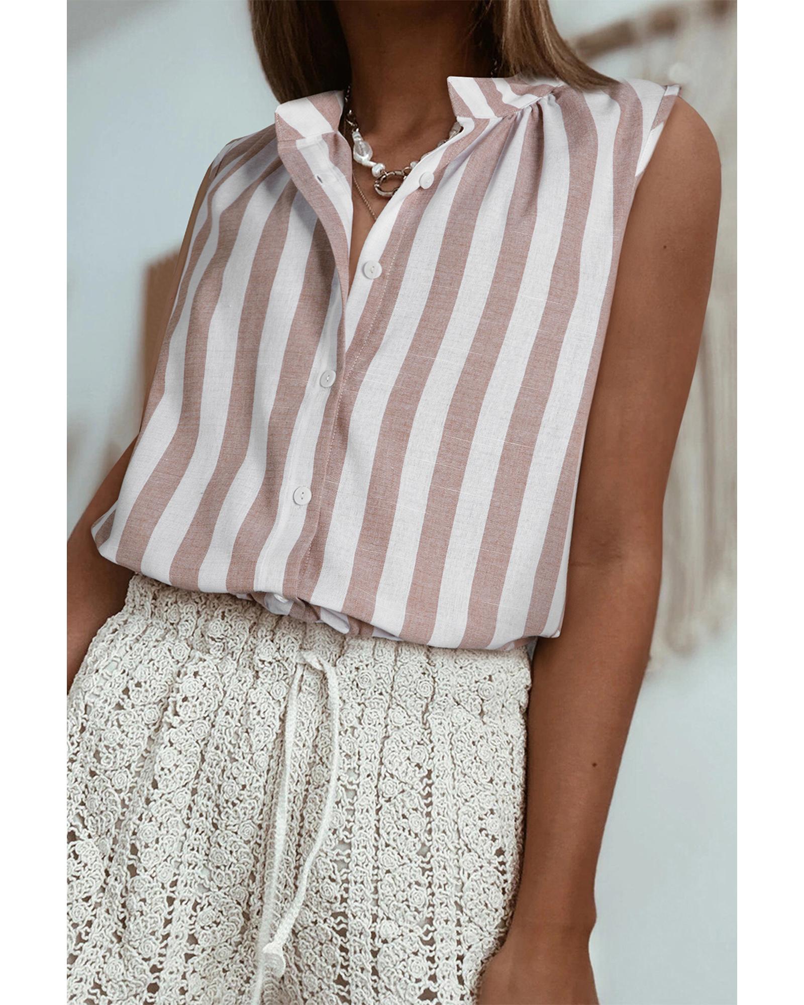 Khaki Stripe Casual Button Down Sleeveless Shirt – XL