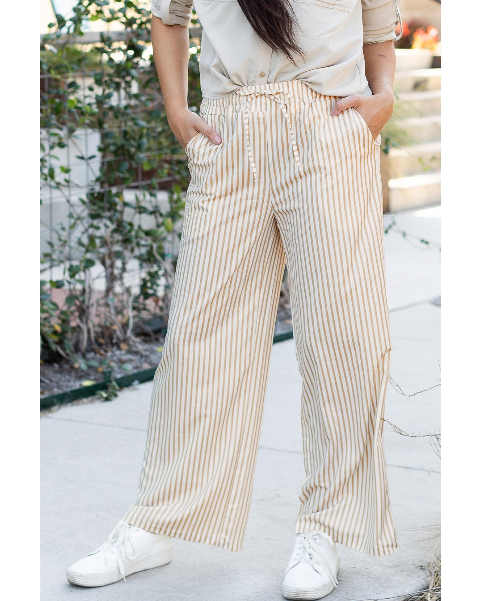 Khaki Stripe Print Wide Leg Drawstring Pants – XL