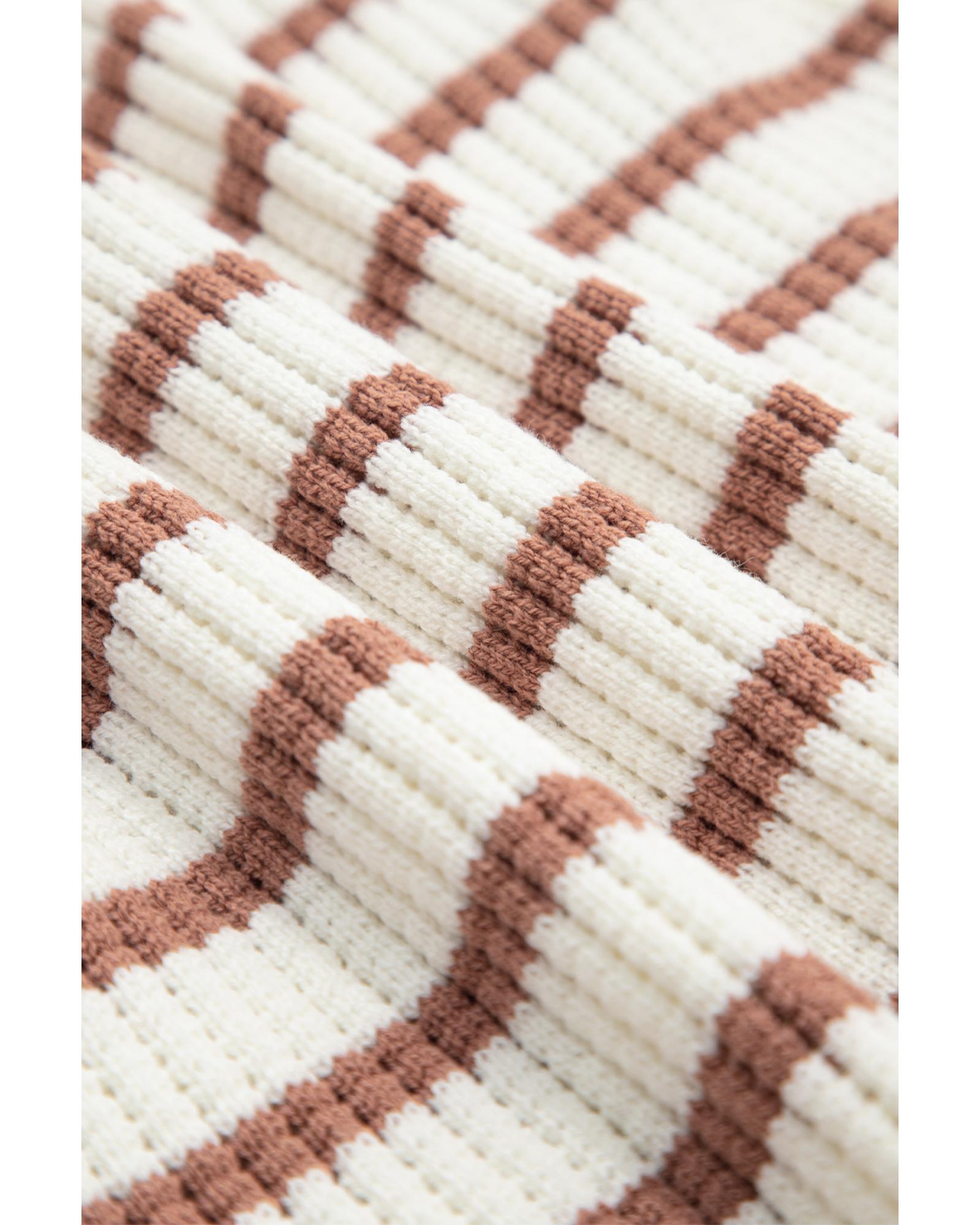Khaki Stripe Scalloped Round Neck Short Sleeve Sweater – XL