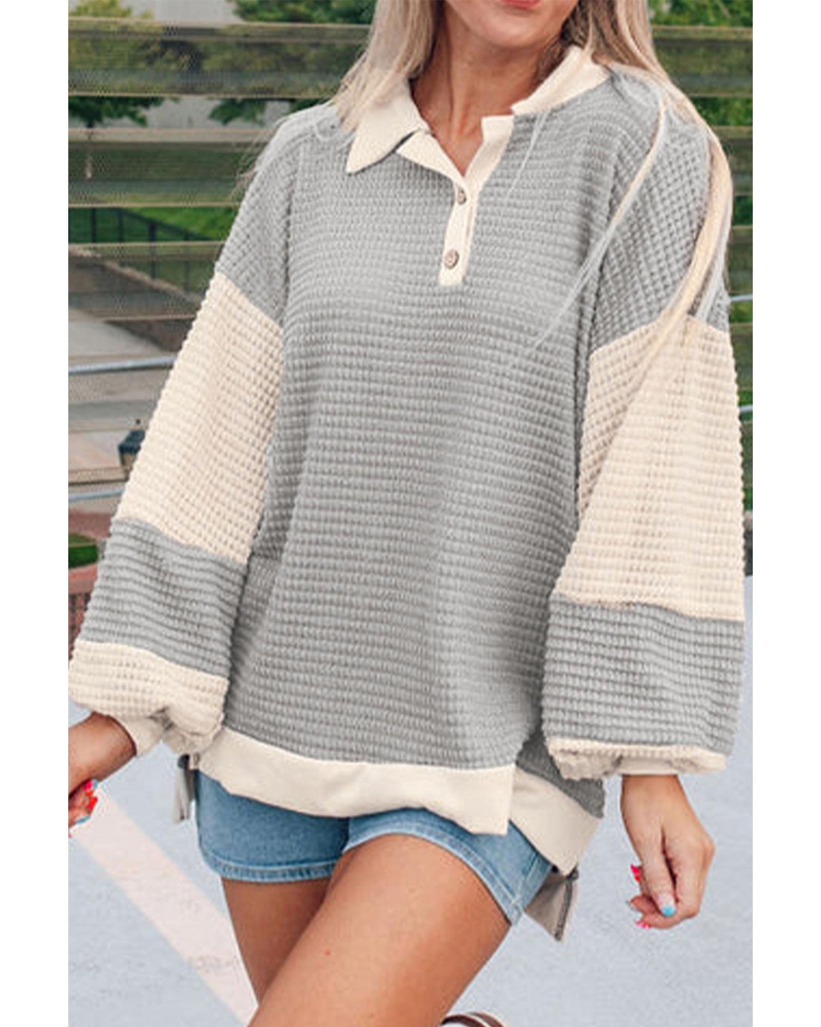 Mineral Blue Solid Waffle Knit Patchwork Raglan Sleeve Sweatshirt - M Original price was: $74.99.Current price is: $40.99.