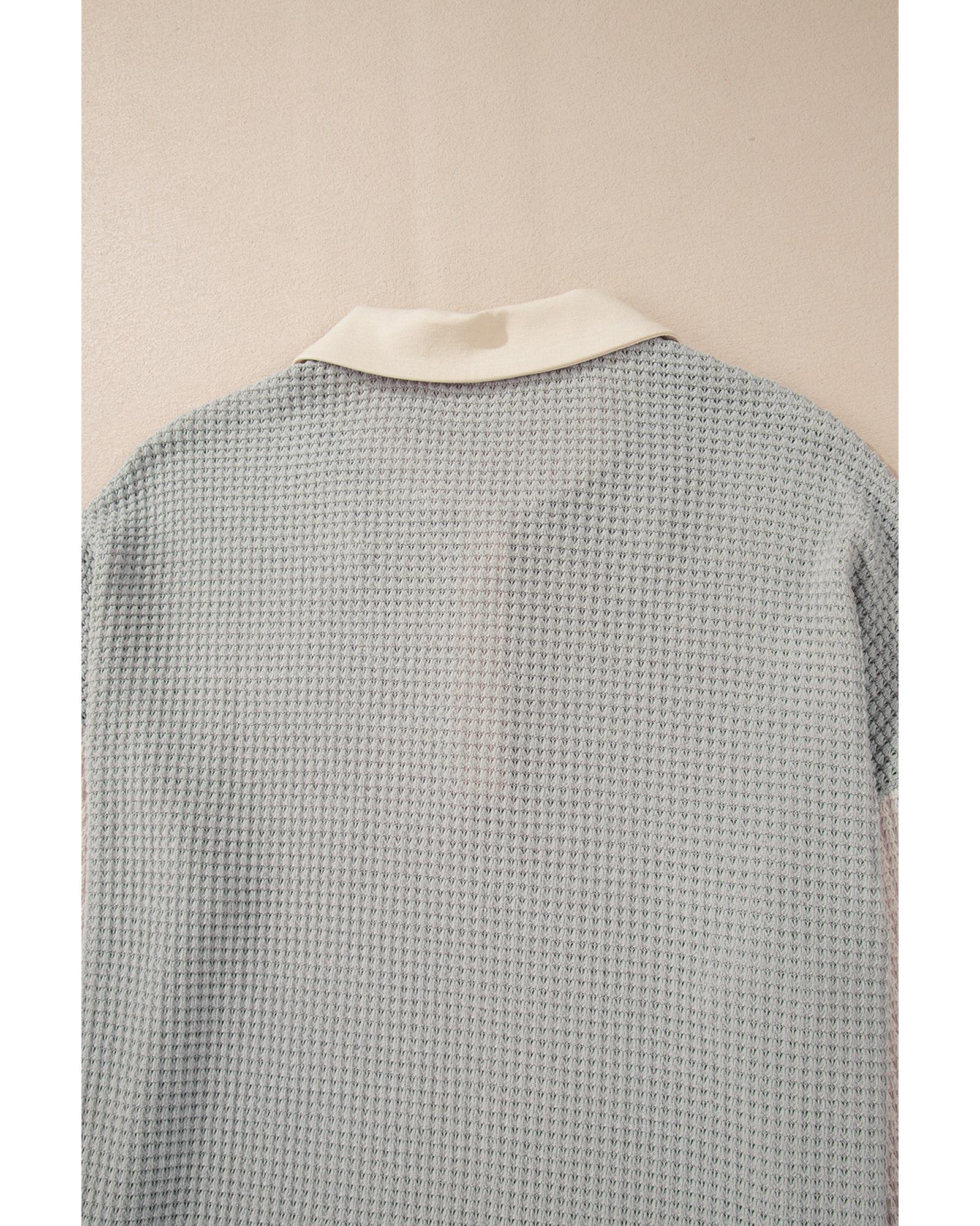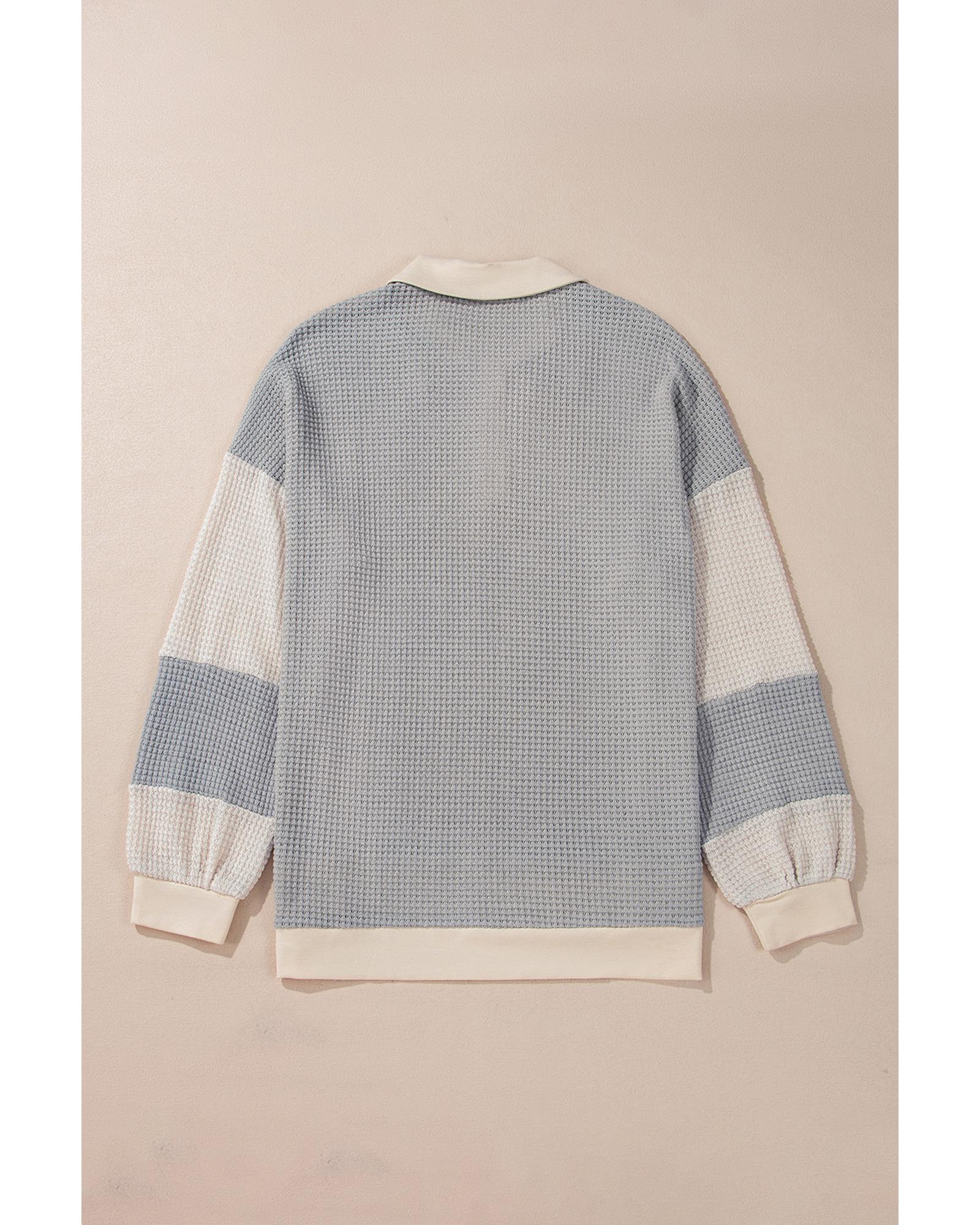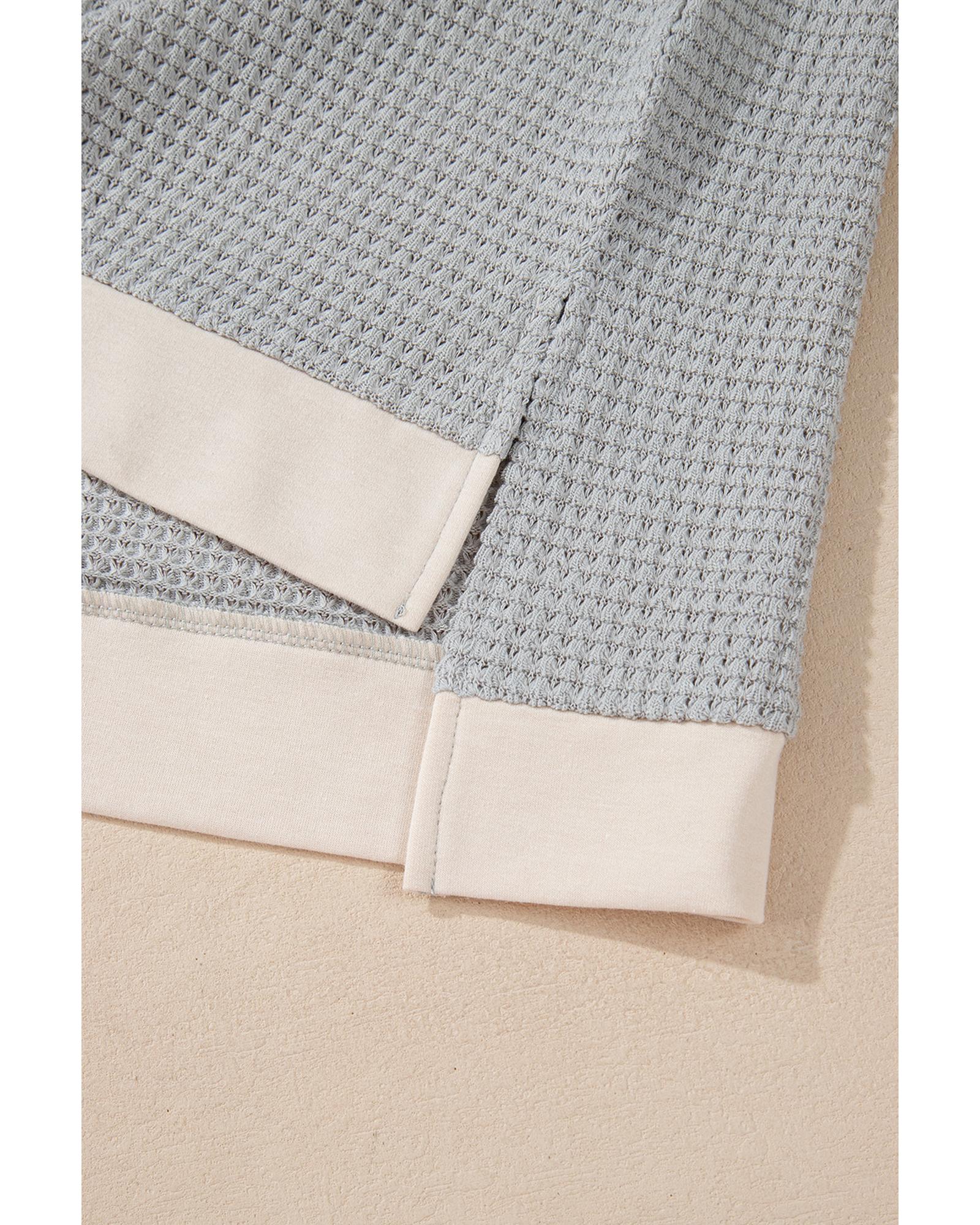 Mineral Blue Solid Waffle Knit Patchwork Raglan Sleeve Sweatshirt - S Original price was: $74.99.Current price is: $40.99.