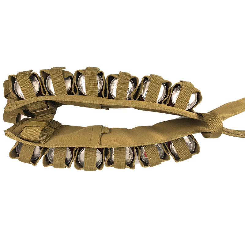 - Features: 12 can holsters, Adjustable straps, Durable buckle, Breathable mesh, Internal pockets, Velcro can straps