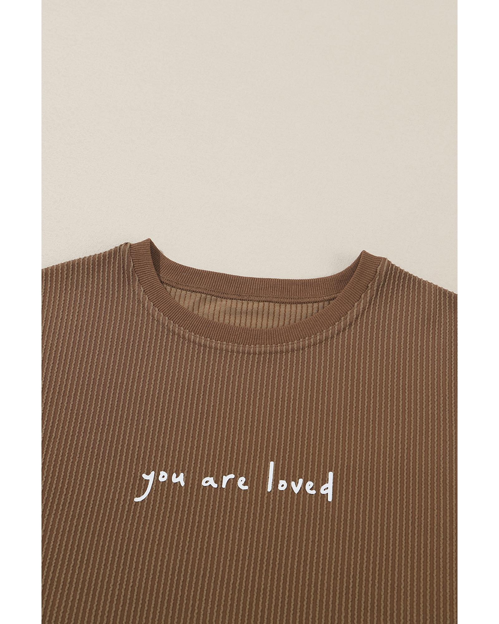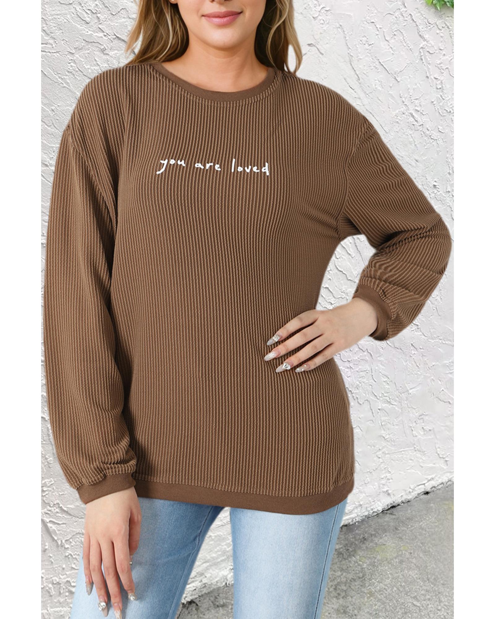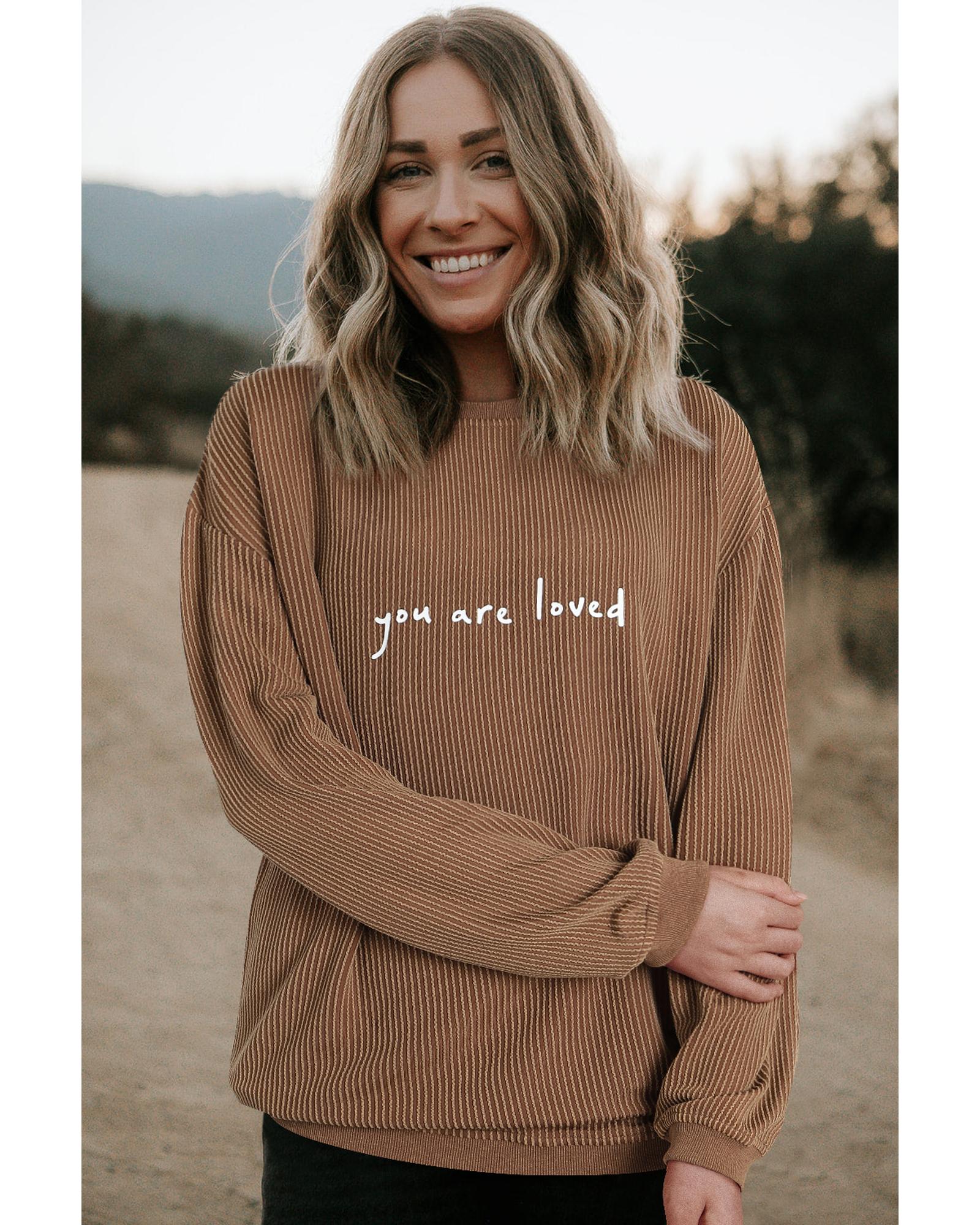 Khaki You Are Loved Print Corduroy Sweatshirt – L