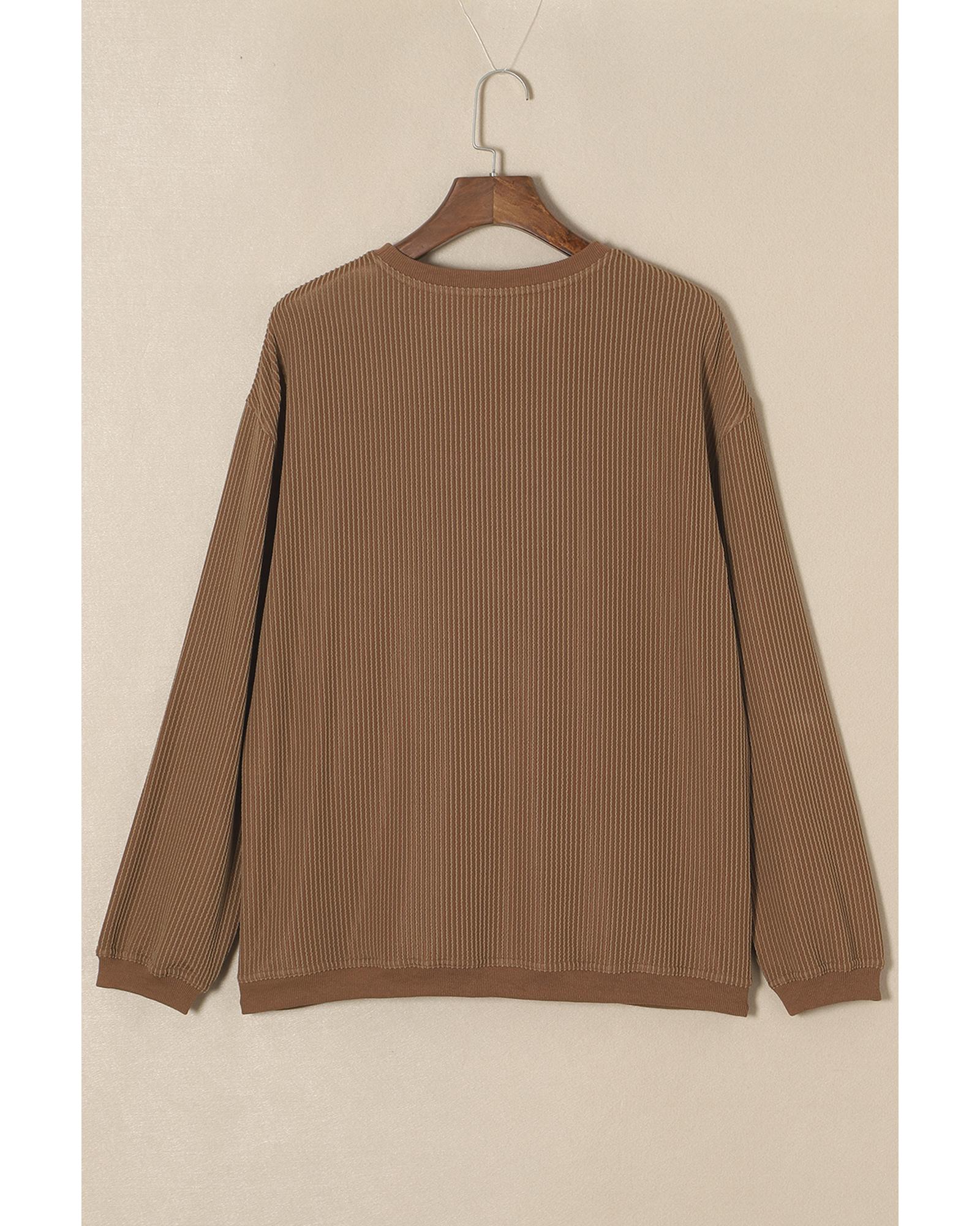 Coffee Solid Exposed Seam Pullover Sweatshirt - L