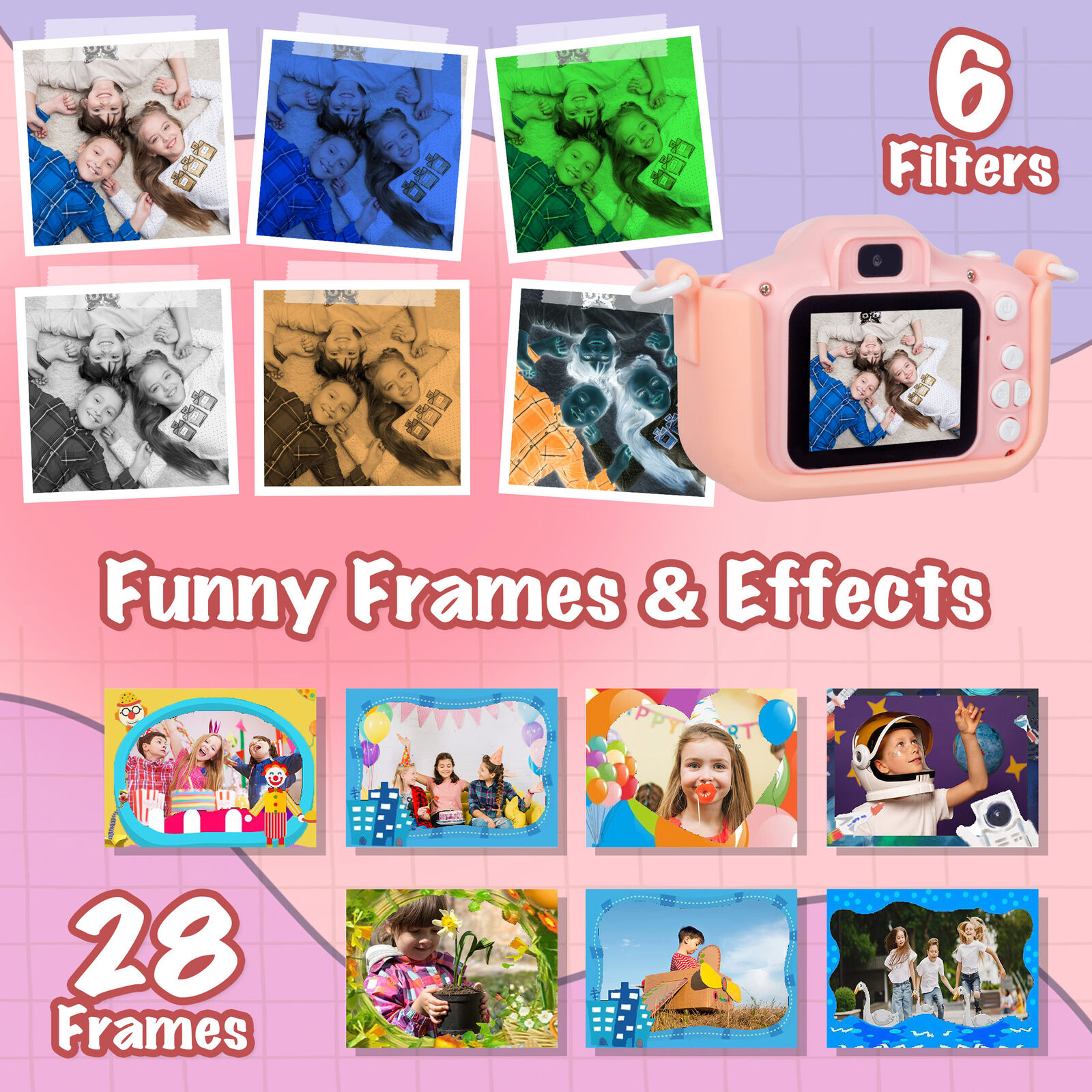 - Fun filters Frames – 28 frames and 5 filters to enhance creativity.