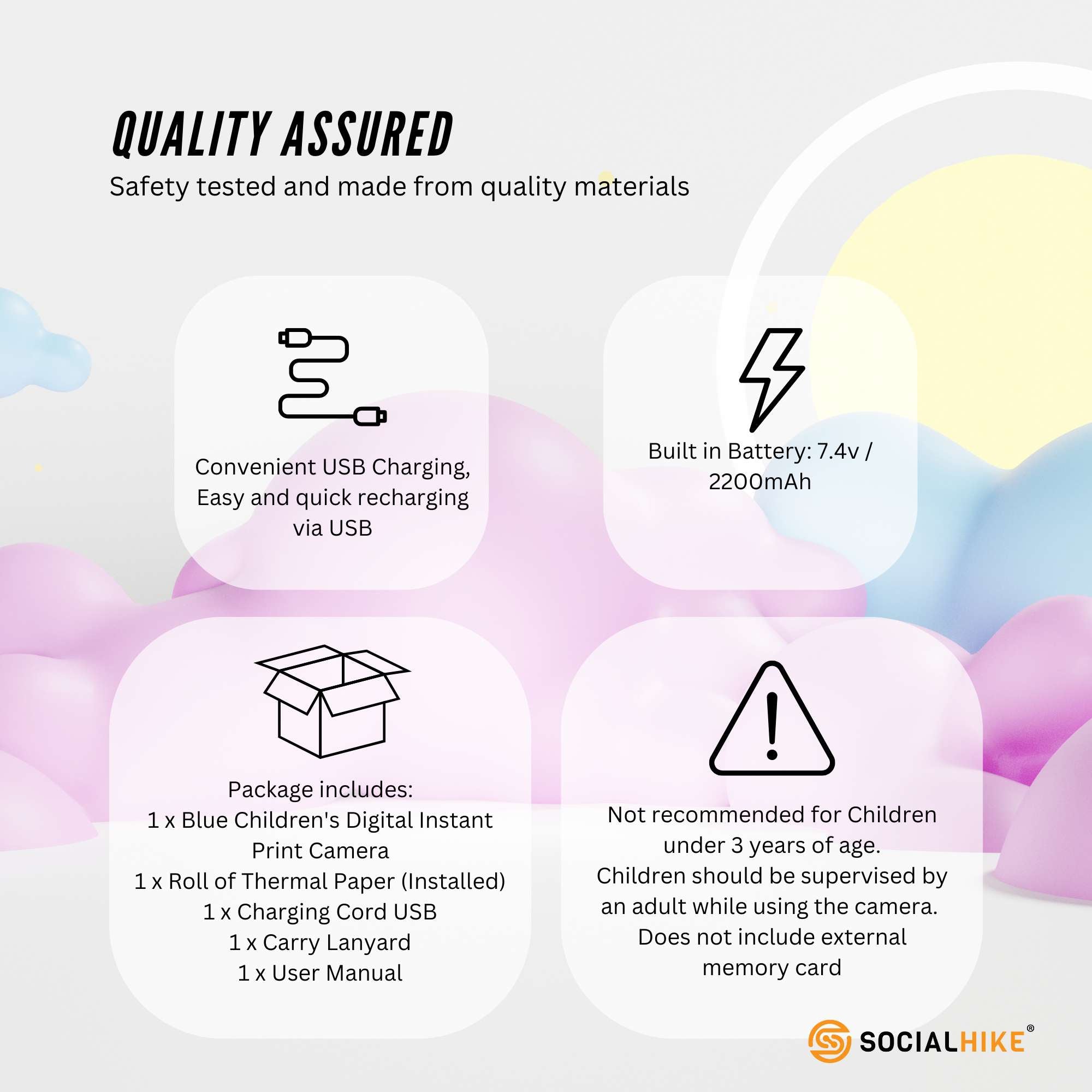 Looking for a fun and easy way to capture your child’s unforgettable moments? Our Social Hike Kids Instant Print Camera is the perfect solution! Designed with young photographers in mind, this camera is packed with exciting features that make photography a breeze and tons of fun.Â