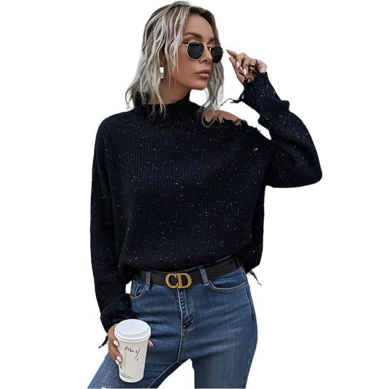 • 1 x Ladies Loose Off Shoulder Ripped Long-Sleeved Turtleneck Autumn Knitted Sweater