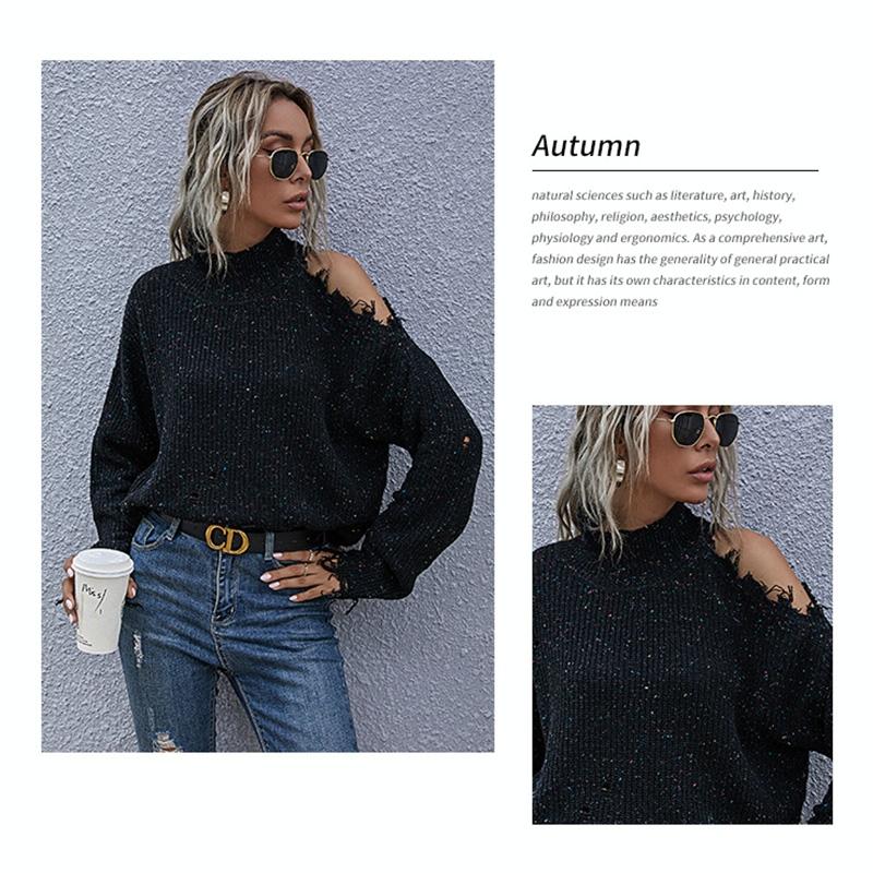 • 1 x Ladies Loose Off Shoulder Ripped Long-Sleeved Turtleneck Autumn Knitted Sweater