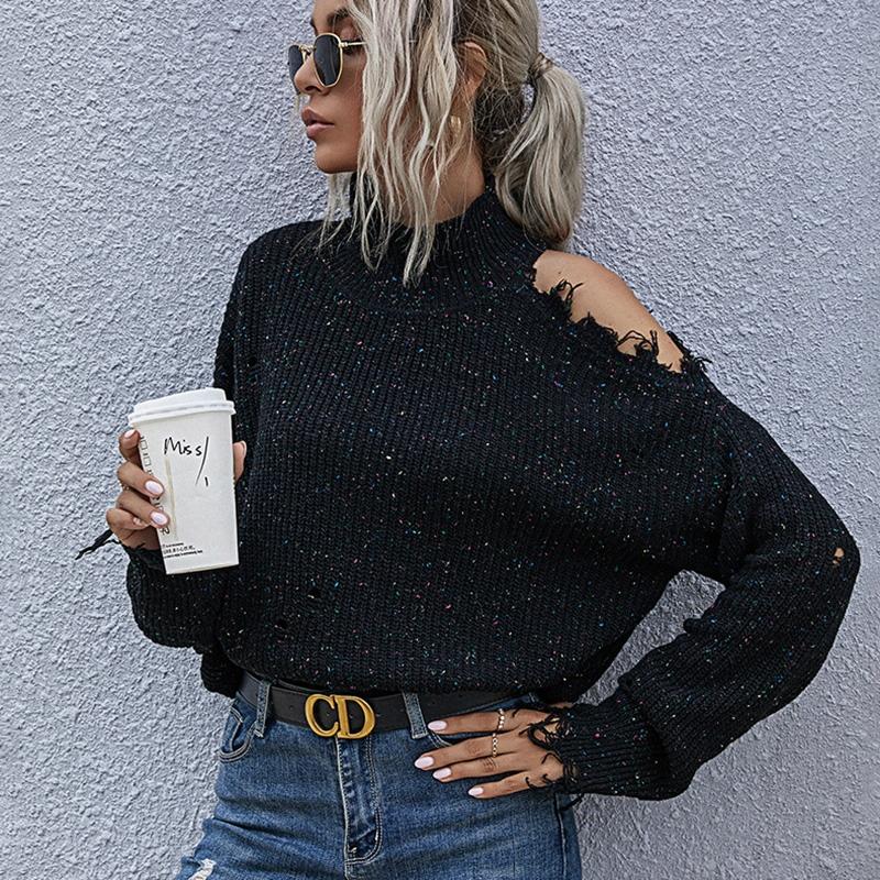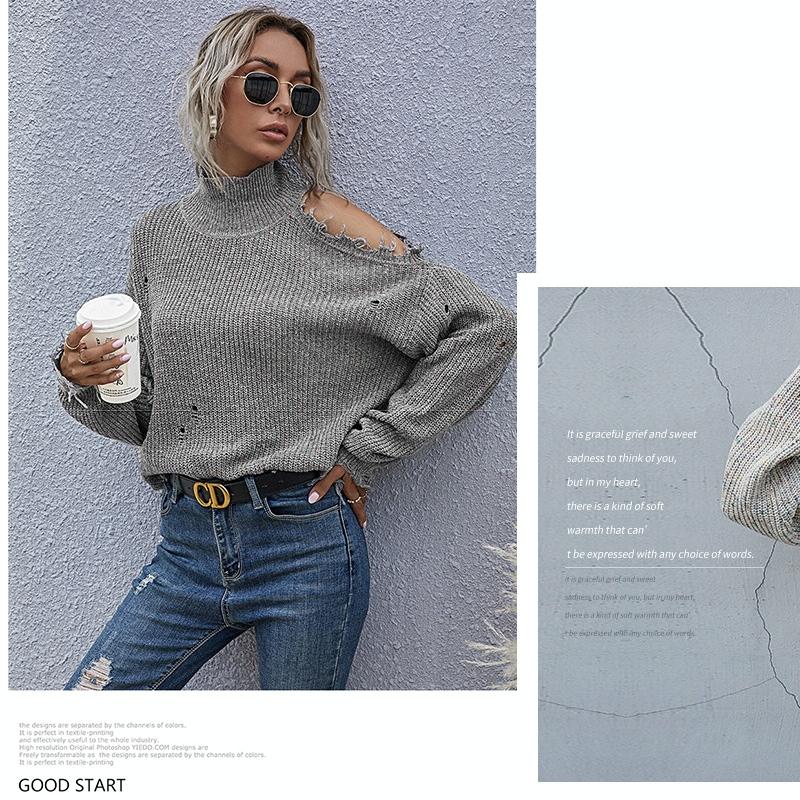 • 1 x Ladies Loose Off Shoulder Ripped Long-Sleeved Turtleneck Autumn Knitted Sweater