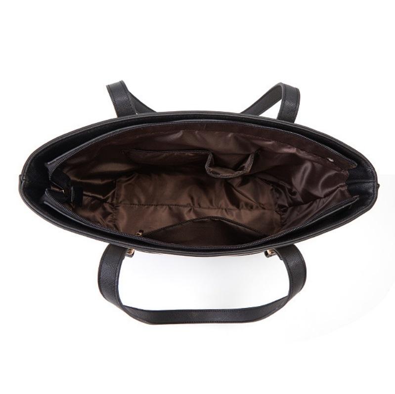 Large Capacity Fashion Handbag with Diagonal Design and Letter Detail – Brown Black