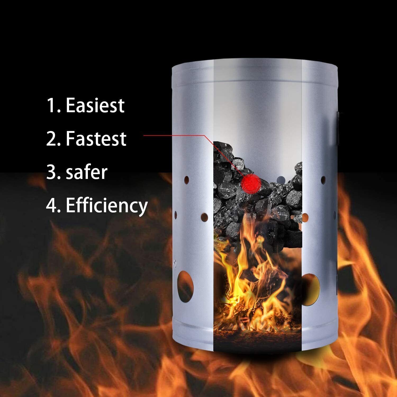 The compact chimney starter is made of high-quality material and has a large capacity. It is simple to use and quick to ignite. The compact chimney starter fits perfectly all kinds of briquette charcoal and it is a good choice for outdoor barbecues and camping.