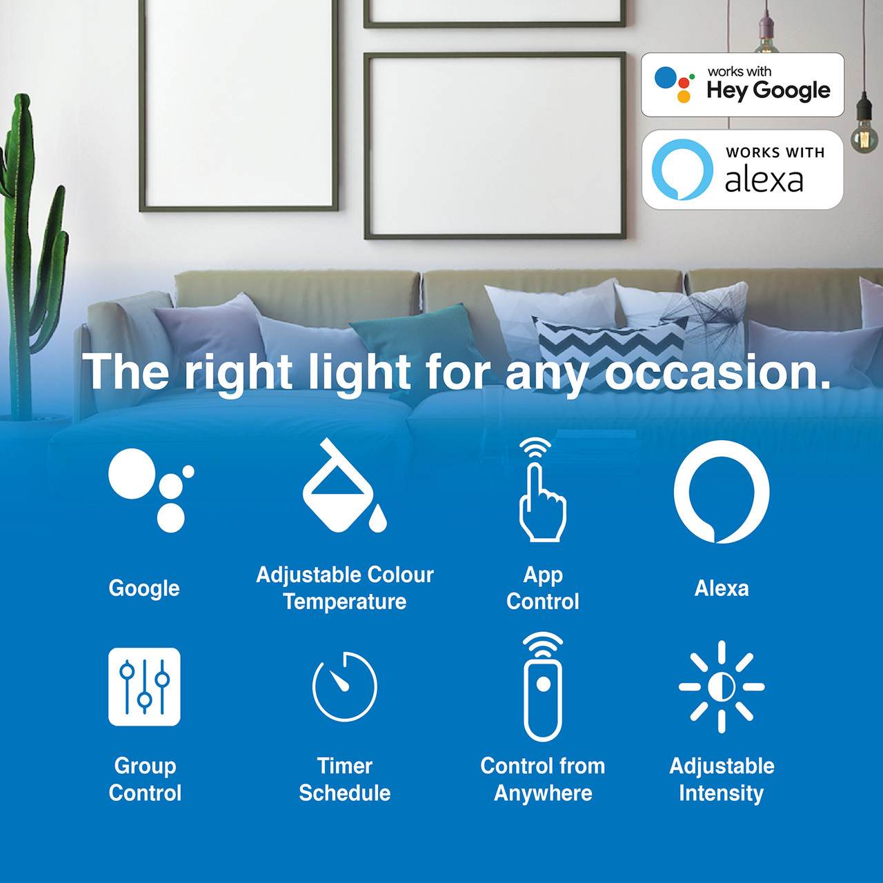 - Voice Control: Easily compatible with Amazon Alexa and Google Assistant for hands-free lighting control.