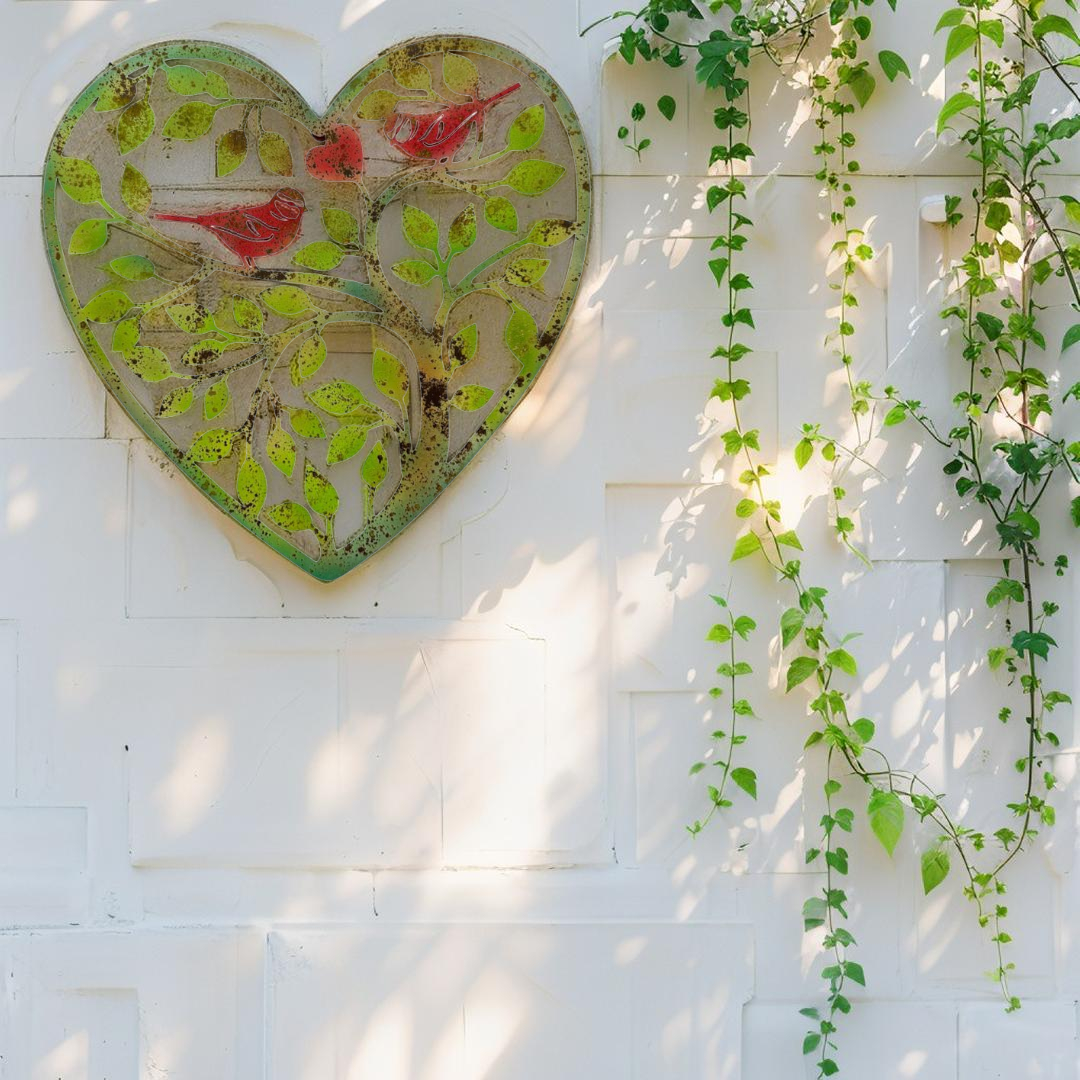Laser Cut Heart Tree Of Life w Red Birds 45cm