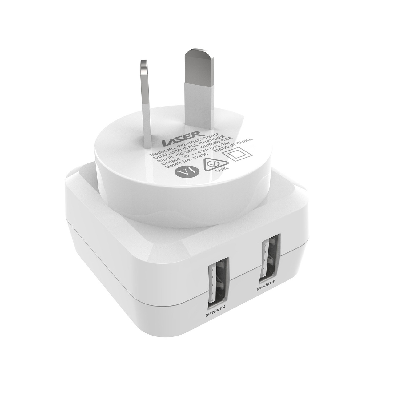 Stay powered wherever you go with the Laser Dual USB AC Charger in White the perfect solution for charging multiple devices at once.