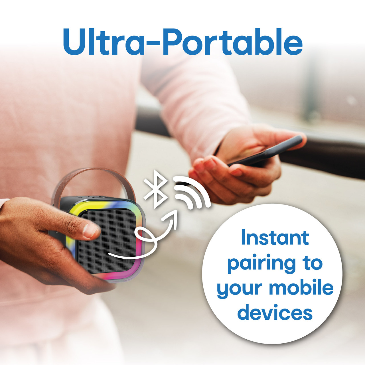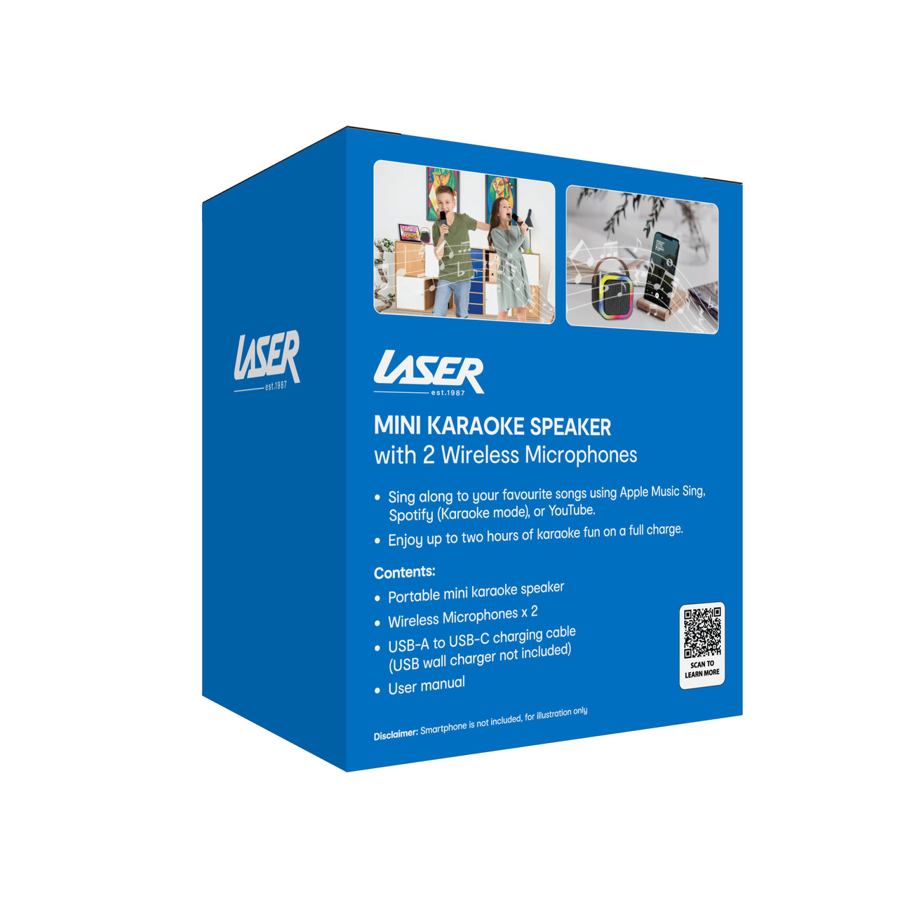 Make every occasion memorable with the Laser Mini Karaoke Speaker and its two wireless microphones!