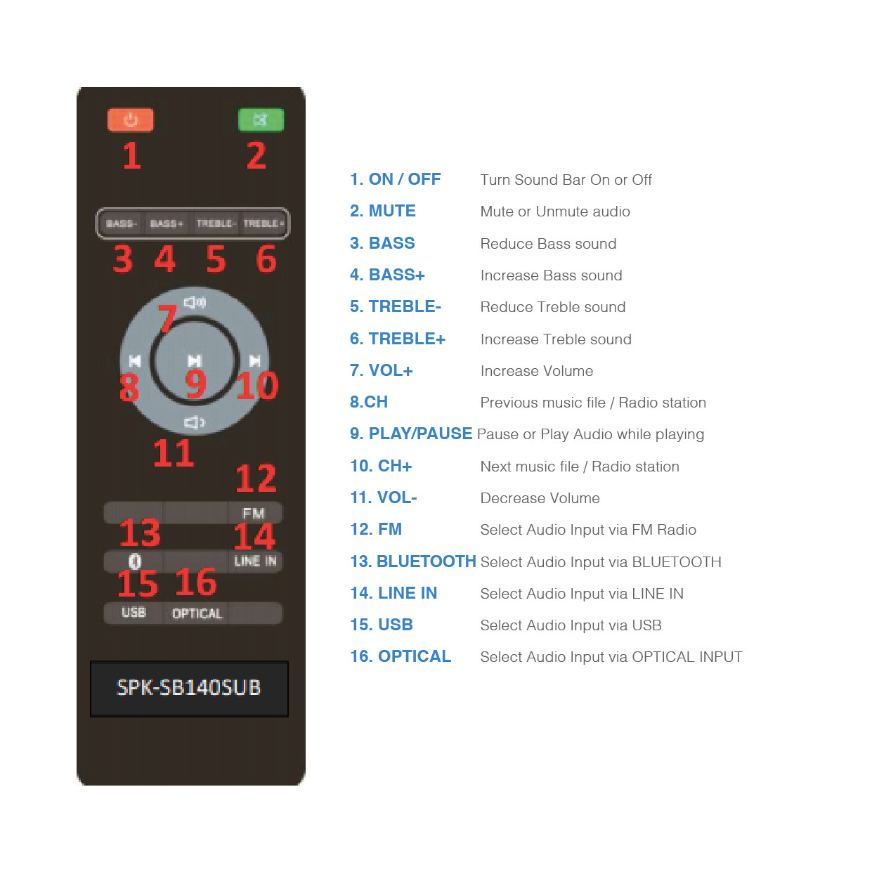• 2 channel stereo Full-range speakers in the soundbar produces left and right stereo sound