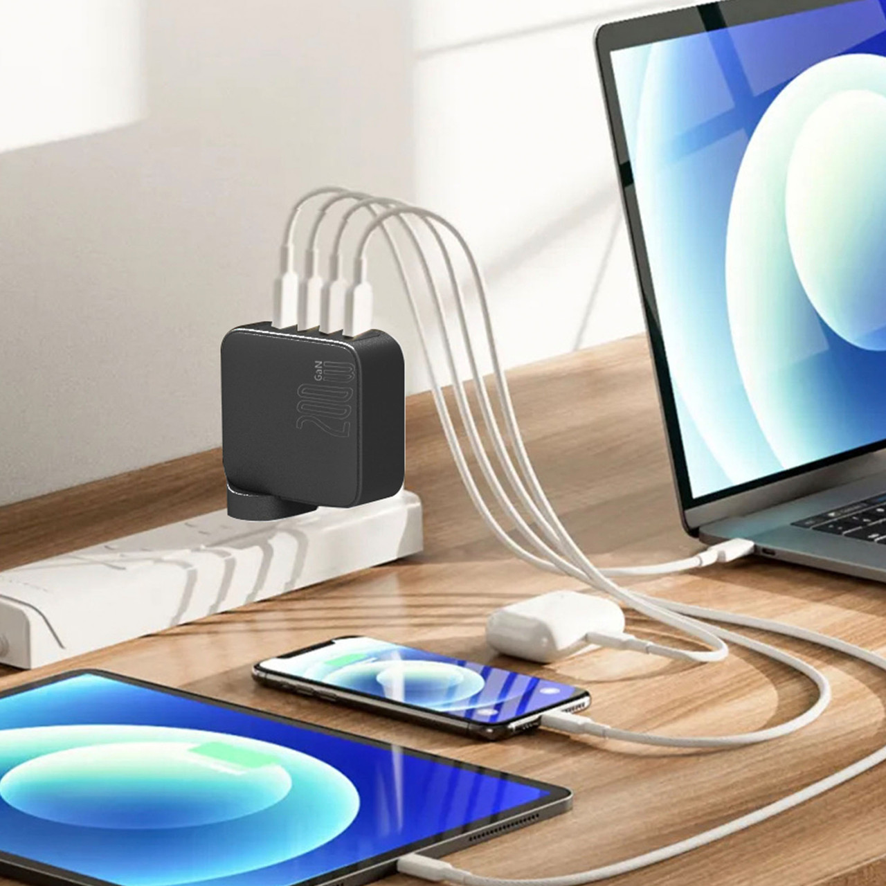 Charge multiple devices simultaneously with the Laser 200W GaN Charger in a compact, travel-friendly design.