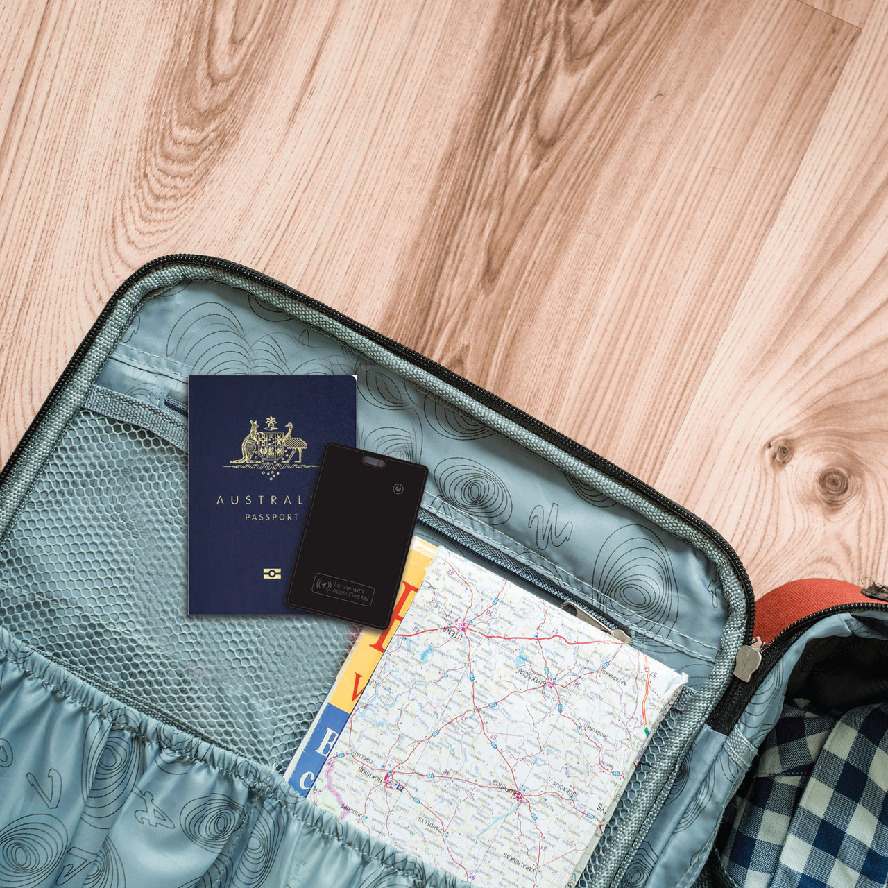 The Laser Smart Card works with Apple Find My to keep track of items such as luggage, wallets, handbags or anything in which a credit card sized device can fit.
