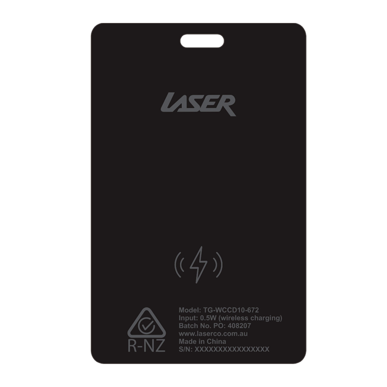 The Laser Smart Card also contains a rechargeable battery which lasts up to 4 months once charged. Recharging is done wirelessly with any wireless charger (such as a Qi wireless charger).