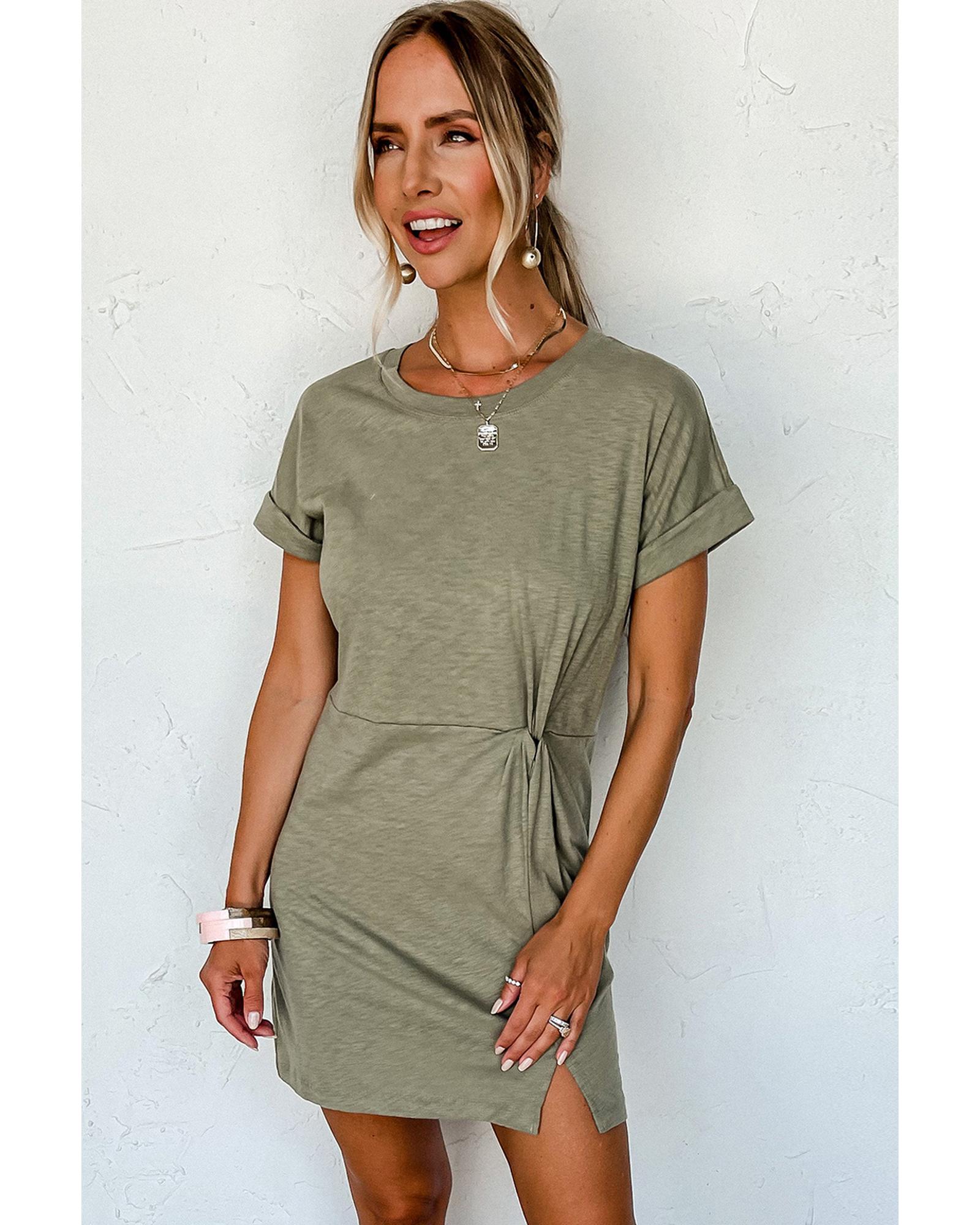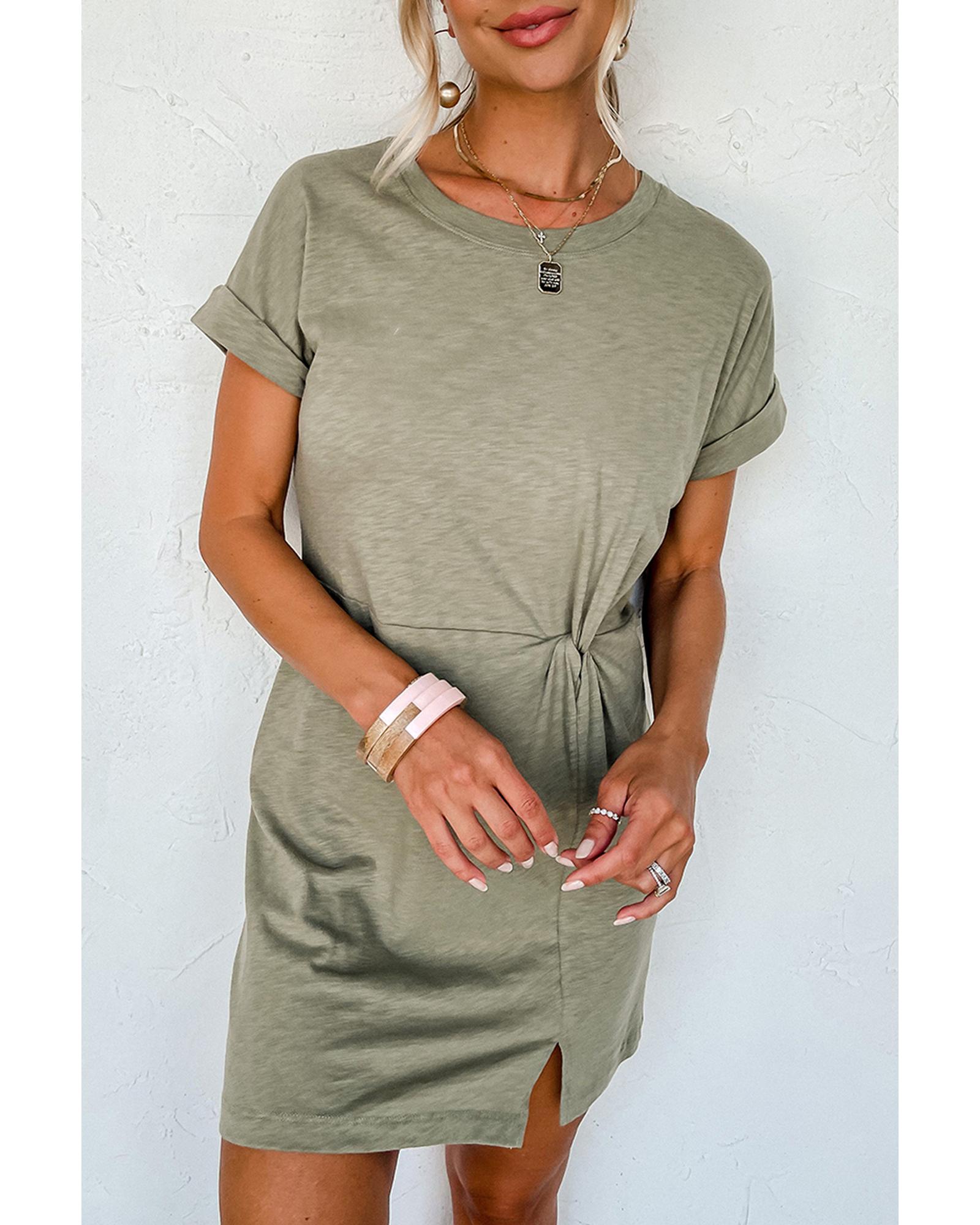 Laurel Green Folded Sleeve Twisted Mini T-Shirt Dress – XL