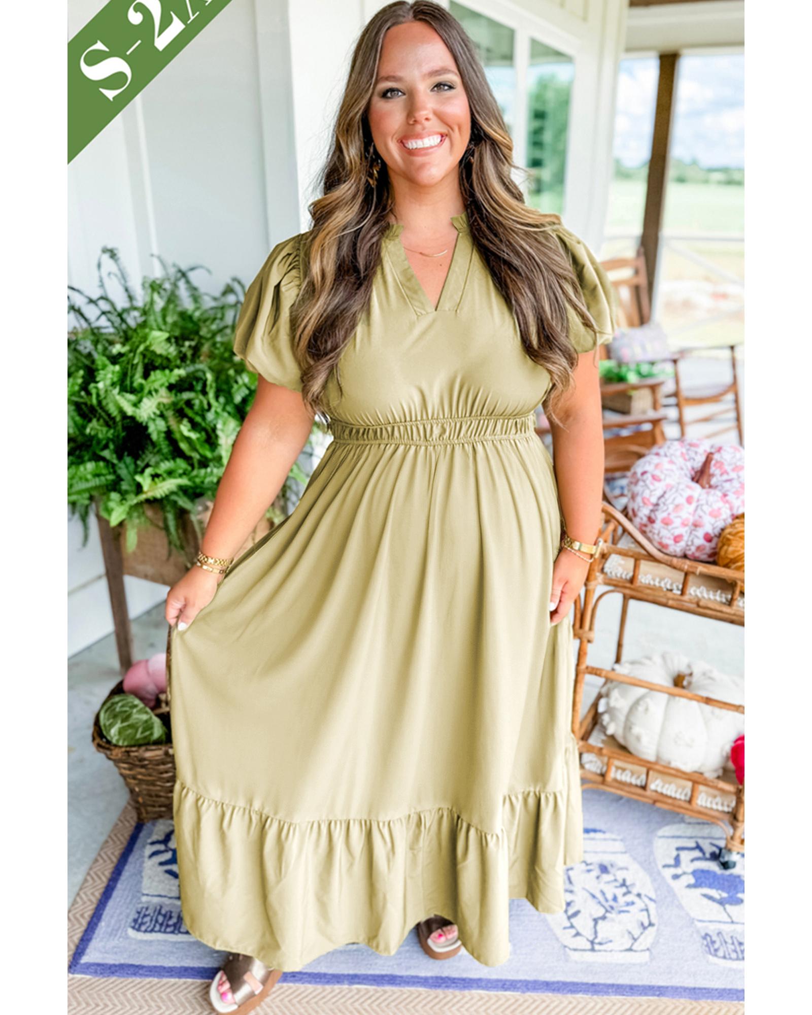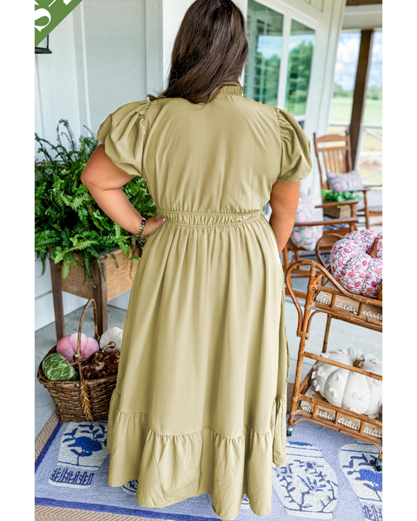 Laurel Green Notched V Neck Puff Sleeve Tiered Plus Size Maxi Dress – 2X