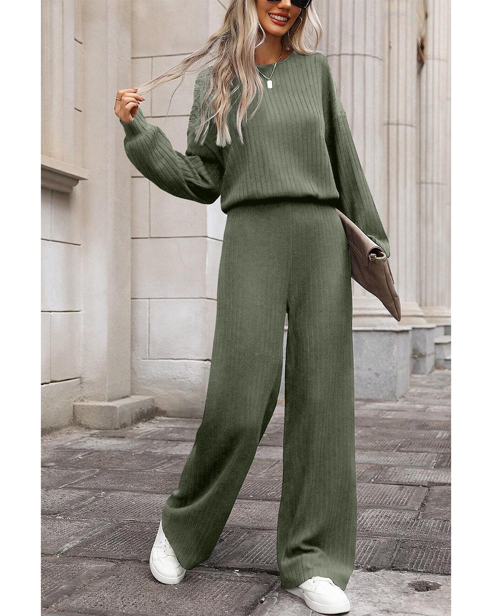 Laurel Green Solid Ribbed Knit Keyhole Back High Waist Jumpsuit – XL