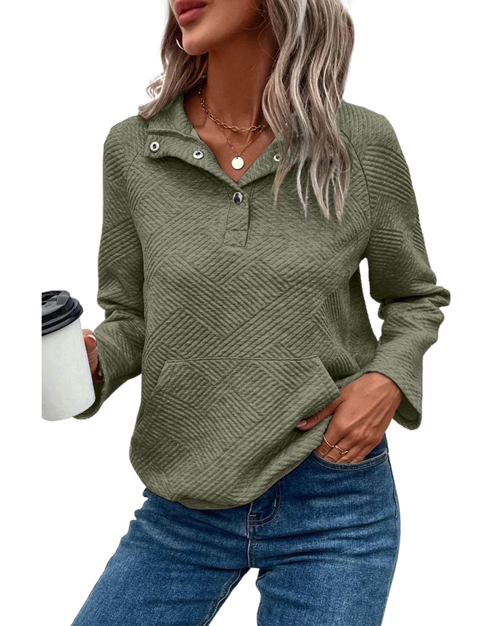 Laurel Green Textured Knit Buttoned Kangaroo Pocket Sweatshirt – S