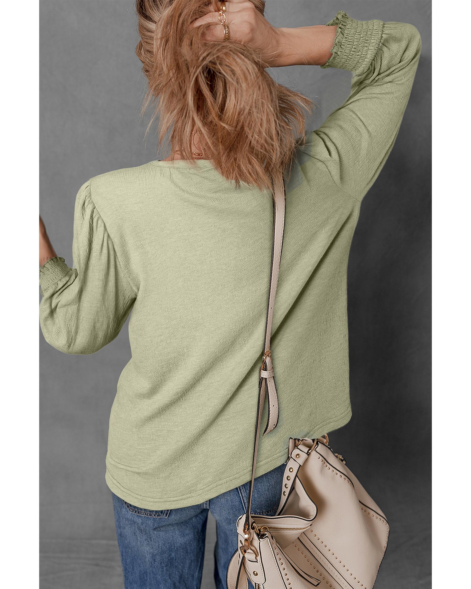 Laurel Green Textured Round Neck Half Sleeve Blouse – L