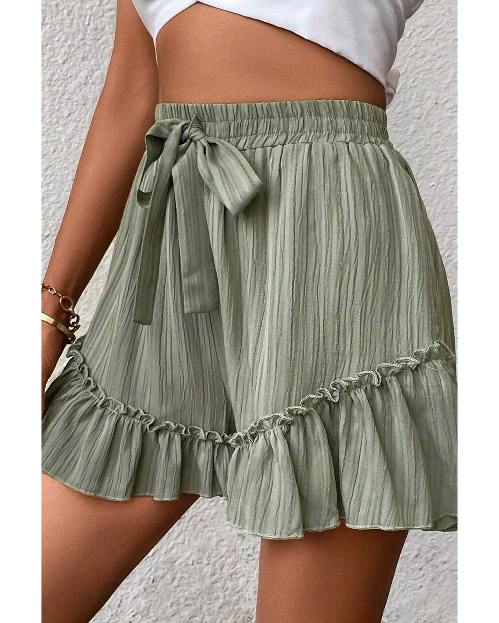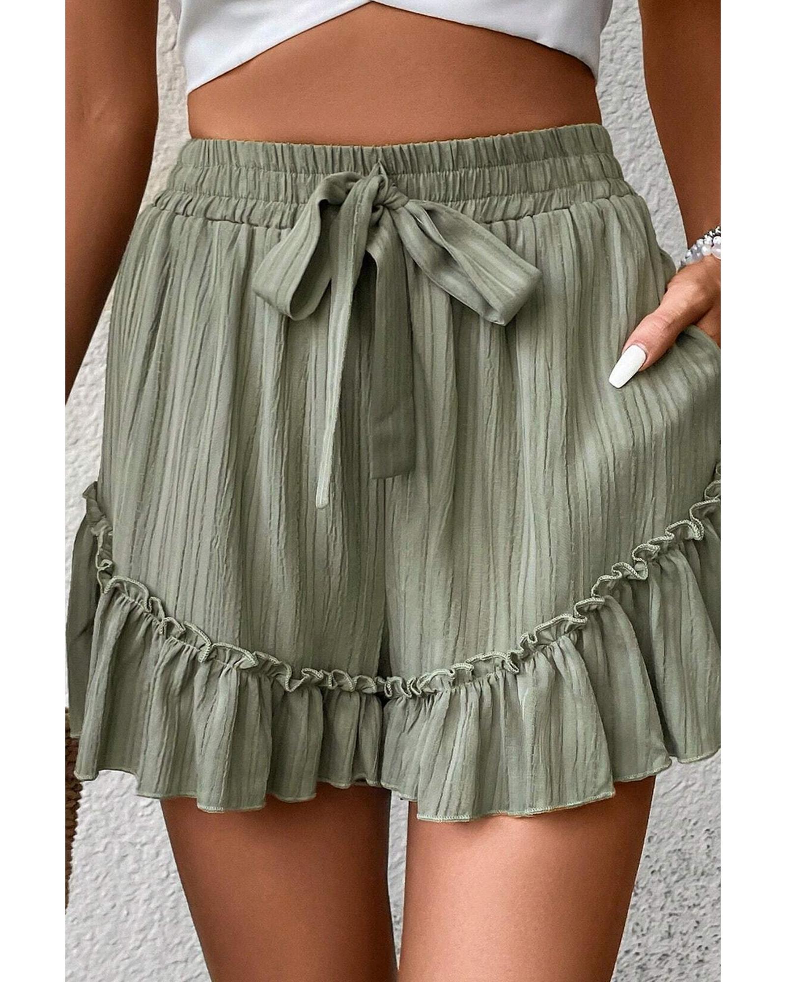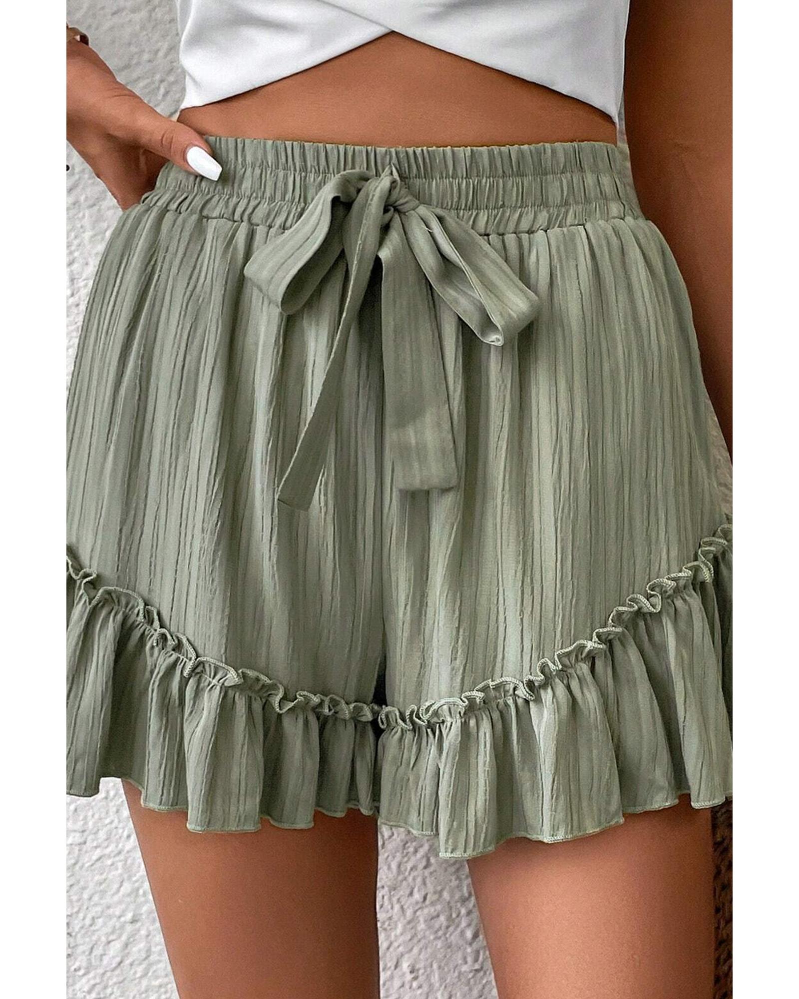 - Laurel Green Textured Tie Waist Ruffle Hem Shorts