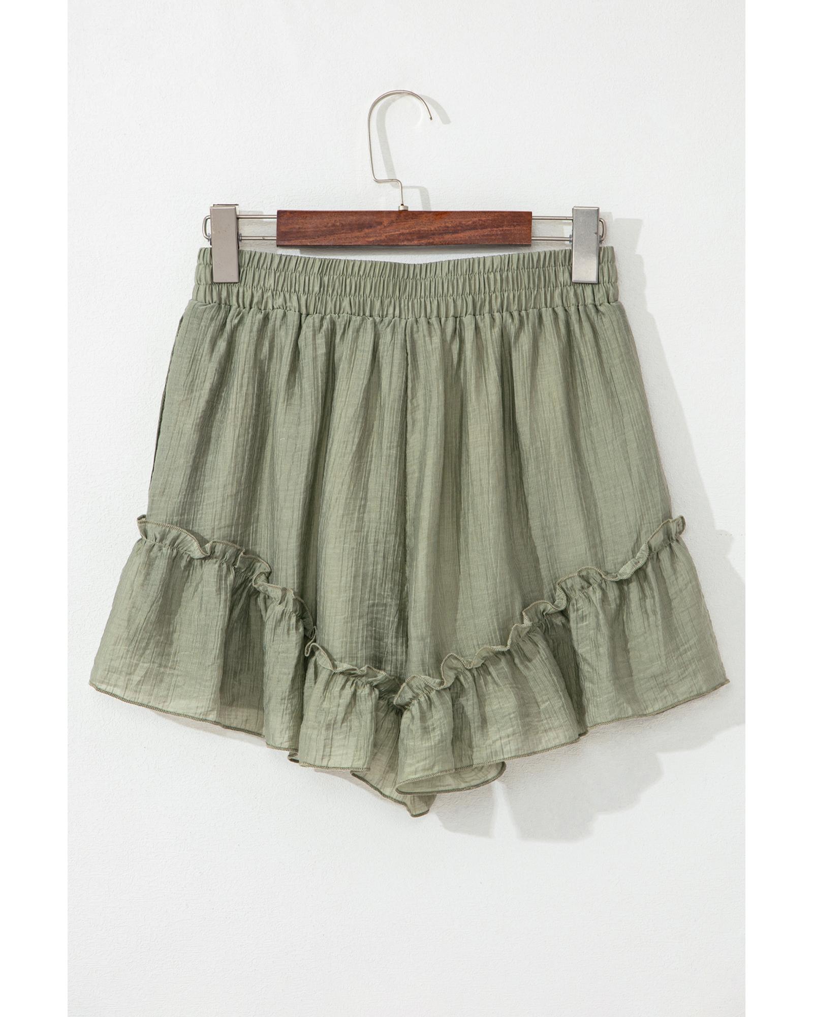 - Laurel Green Textured Tie Waist Ruffle Hem Shorts