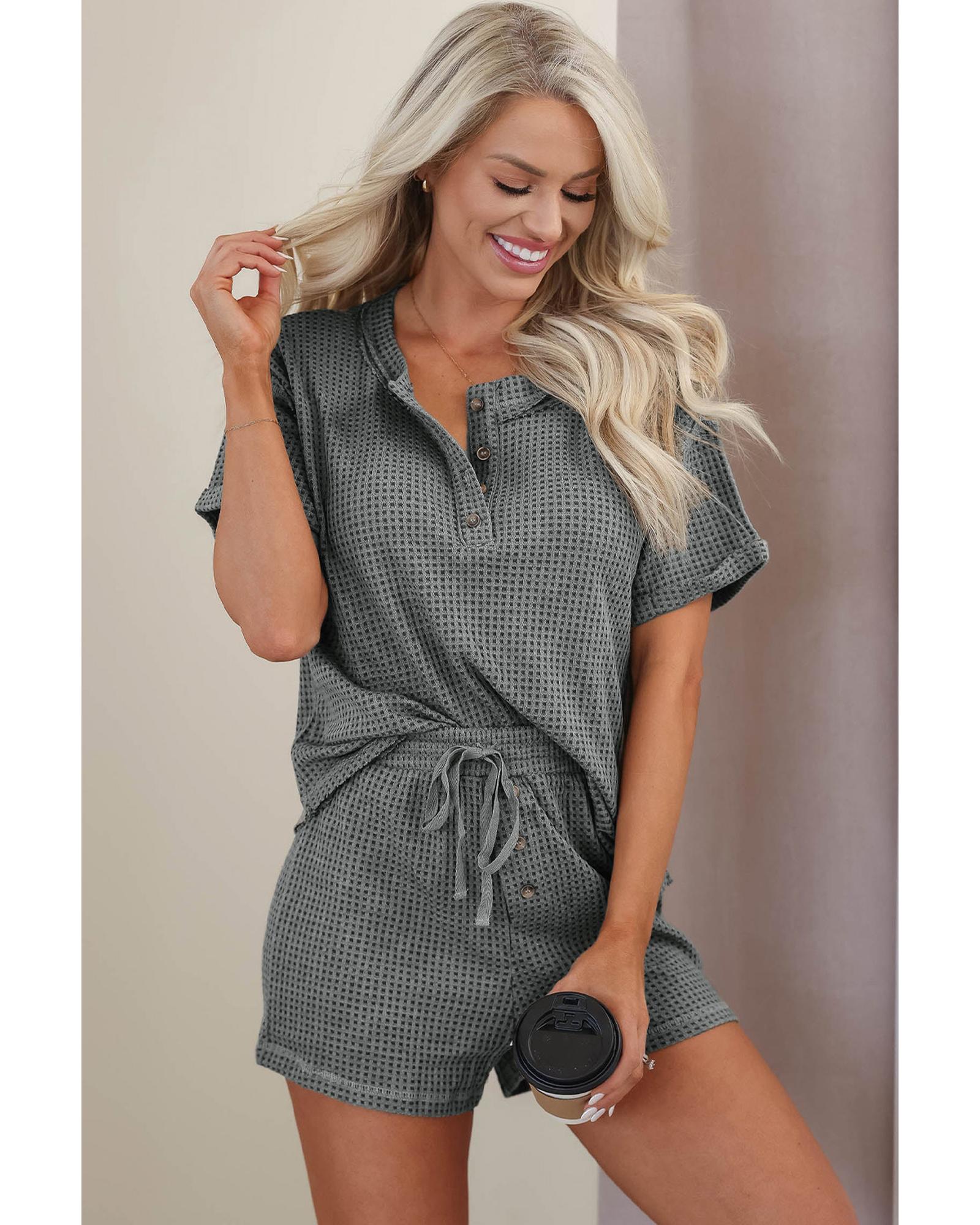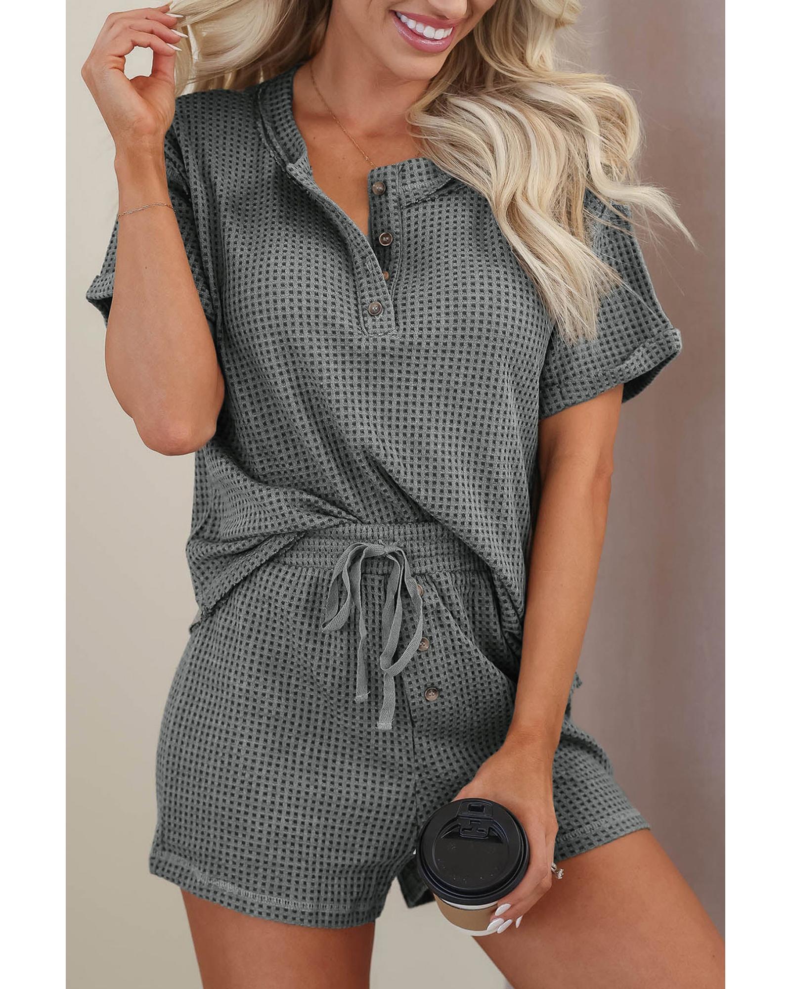 Laurel Green Waffle Knit Buttoned Top and Drawstring Shorts Set – L