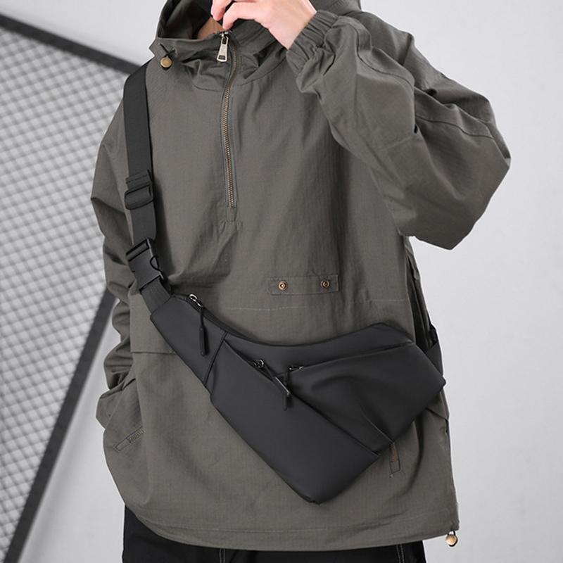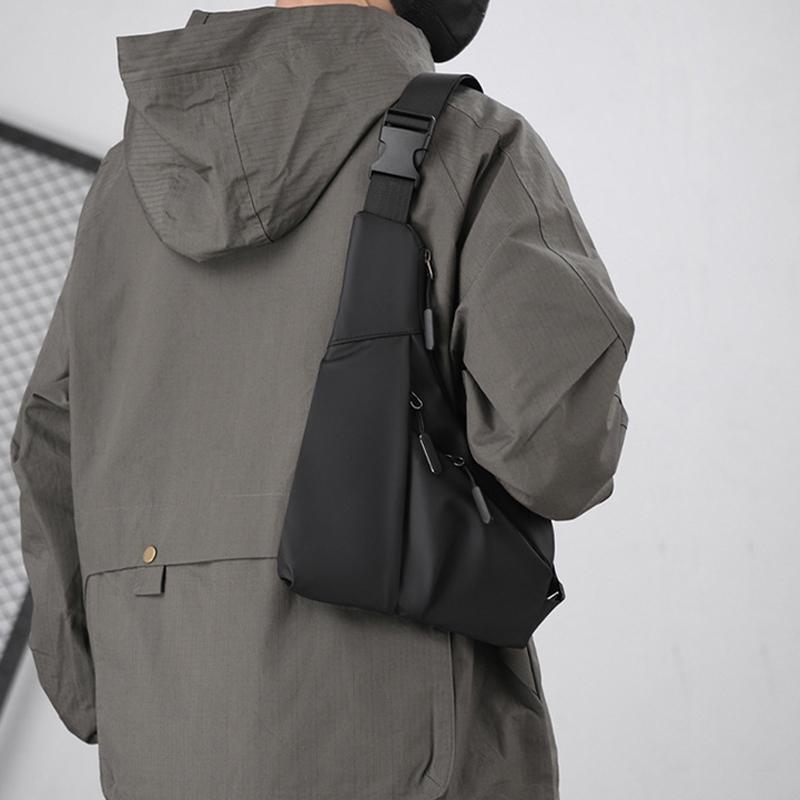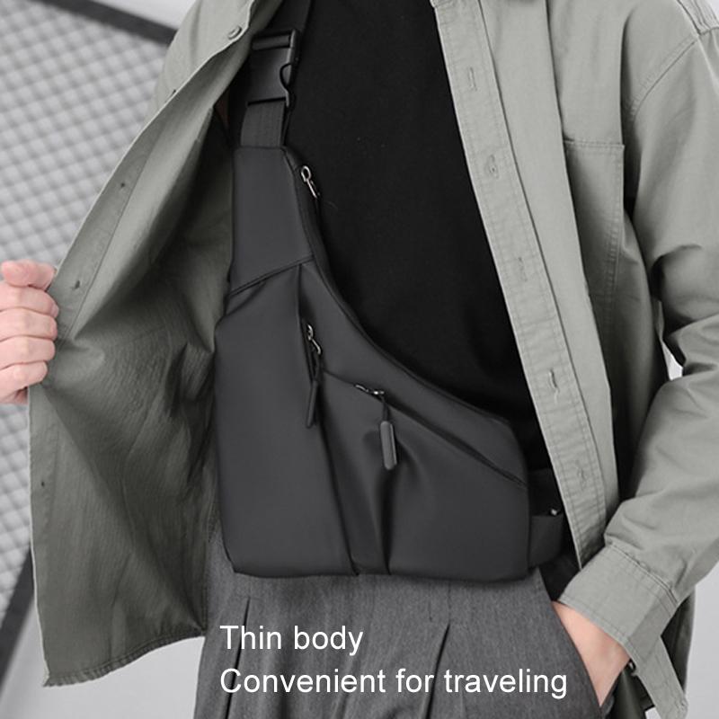 Leather Anti Theft Triangle Bag Secure Crossbody Chest Bag – Black