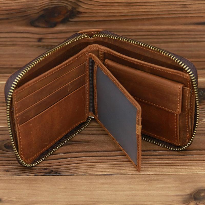 Leather Rfid Zip Wallet – Blocking Compact – Vertical 2
