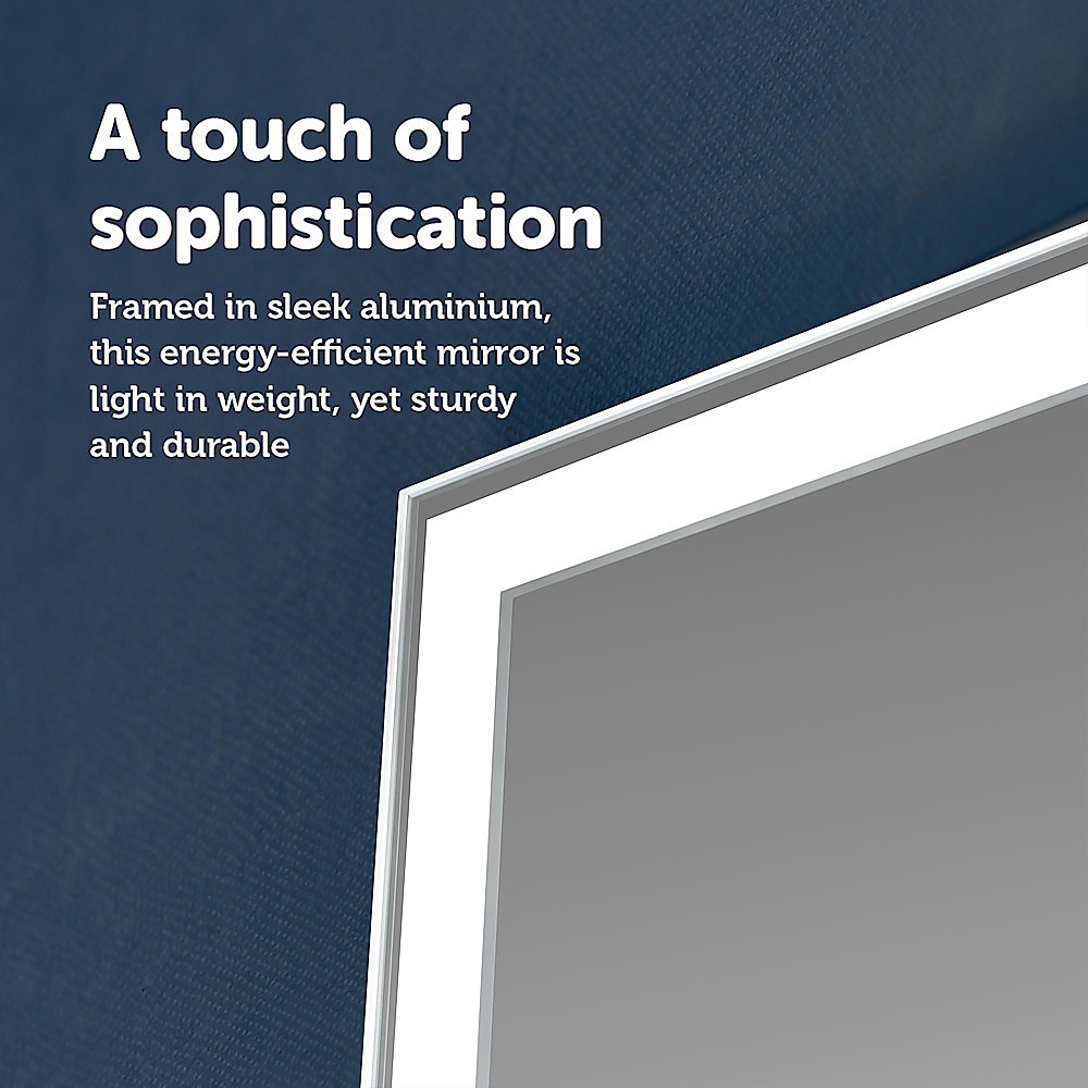 The perfect full-length mirror for your home's bath, entry, bedrooms or even for the dressing rooms in your shop is yours for the asking from Della Francesca. Backlit with three modes of LED lighting, it allows you to see how you look in natural daylight, fluorescent office lighting, or the warm yellow lighting in your living room or a dimly lit restaurant. Framed in sleek aluminium, this energy-efficient mirror is light in weight, yet sturdy and durable. Adjust the brightness and colour temperature down and up with the touch of a button.