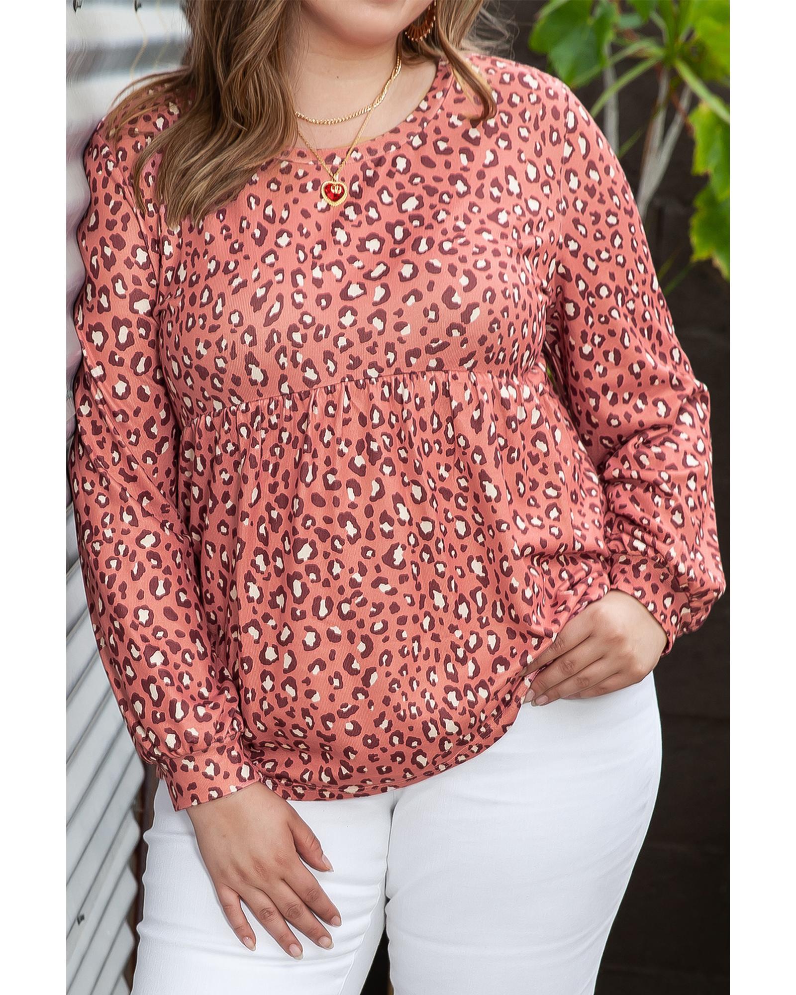 Leopard Print Long Sleeve Ruffled Babydoll Plus Size Blouse – 3X
