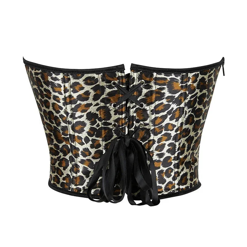 Leopard Print Zip-Up Corset Fishbone Support Plus Size S-Xxl – Xxl