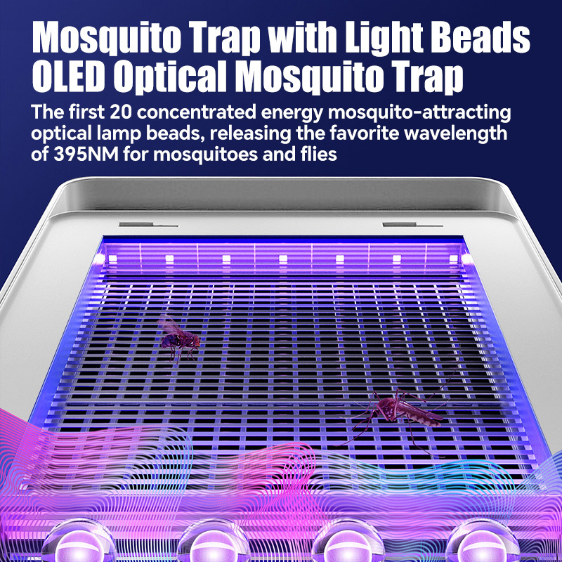 ?Utilizing physical mosquito control methods, the lamp features a high-voltage electric grid that zaps mosquitoes upon contact. The 20 LED mosquito lights emit a 385NM wavelength that attracts mosquitoes and flies, making it irresistible to them. With